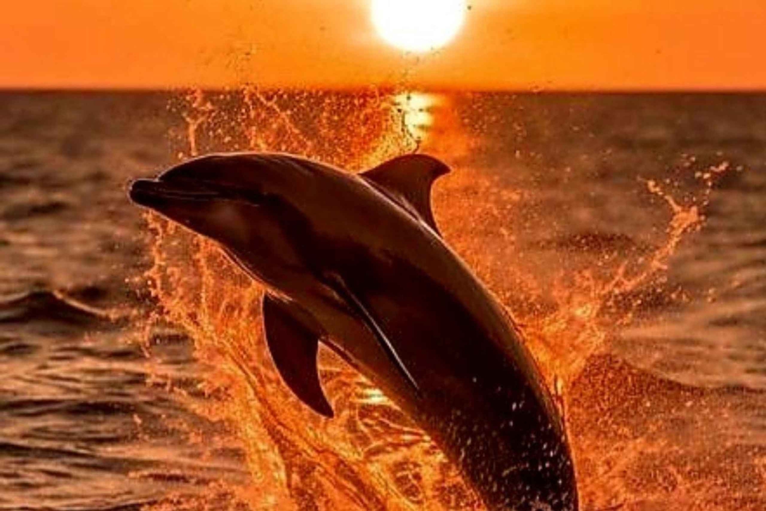 3 timers delfinsafari ved solnedgang med ubegrænset drikkevarer + middag