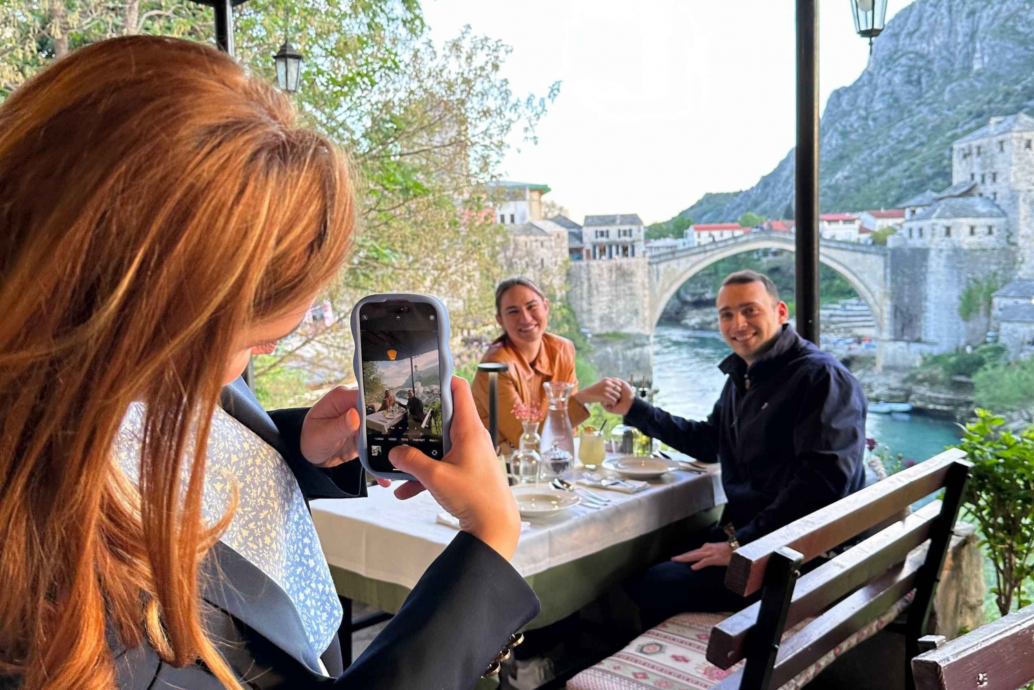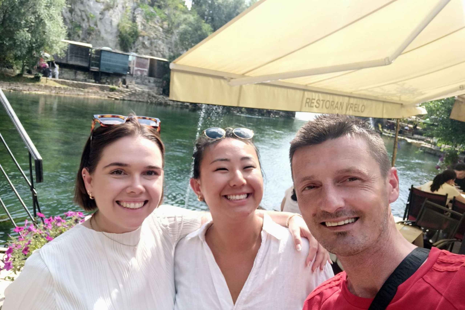 Efter din udforskning af Mostar vil din guide anbefale en dejlig frokost på en lokal restaurant eller et besøg i Blagaj. Blagaj er en malerisk landsby, der ligger ved kilden til den krystalklare Buna-flod, som udspringer fra tårnhøje klipper. Et besøg i Blagaj Tekke, et sufi-hus fra det 16. århundrede, tilføjer en spirituel dimension til din oplevelse.