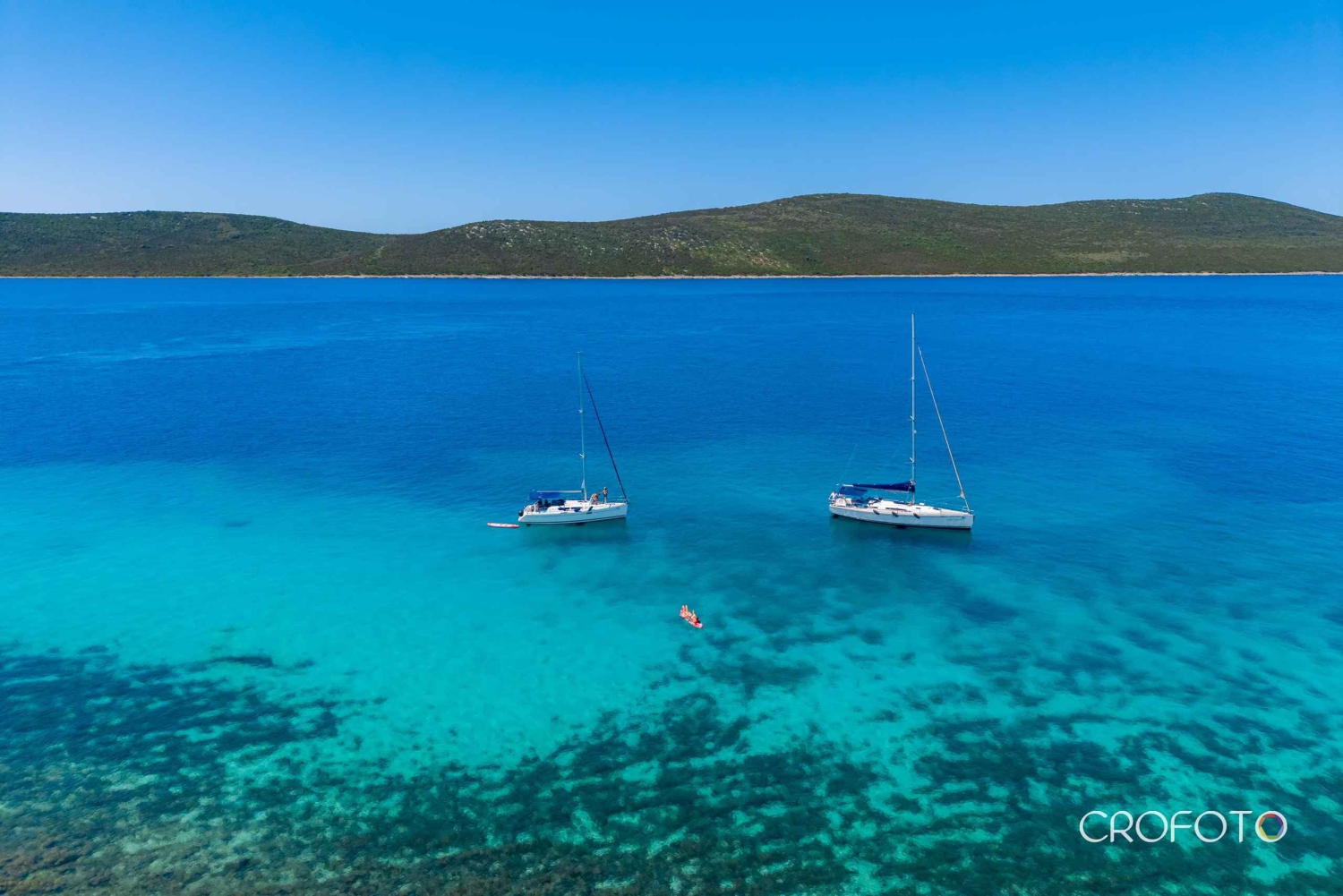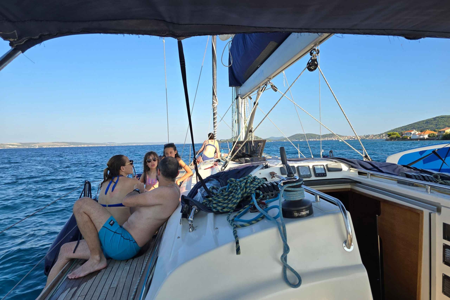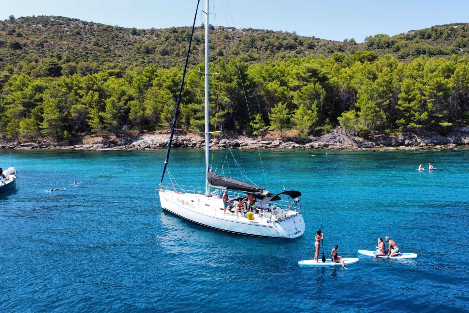 Oplev en dag med sejlads: Du kan nyde sejlads, SUP, snorkling og vandaktiviteter – eller bare ligge på dækket og nyde solen. Gæsterne kan slappe af på en af vores komfortable sejlbåde, hvor de kan benytte kahytter, toiletter, fuldt udstyret køkken og køleskab. Cockpittet er udstyret med sædehynder, sprayhood og bimini-overdækning for fuld komfort. Du kan have det sjovt med vores SUP-brædder, slæbetove og snorkeludstyr. Vores skipper sejler dig til Zadar-øerne med to eller tre stop for svømning, snorkling, SUP og frokost. Ruten og stopene tilpasses dagligt efter vejrforholdene. INKLUDERET: skipper, sejlbåd, SUP, snorkeludstyr, velkomstdrink, øl, vand på flaske.Includes