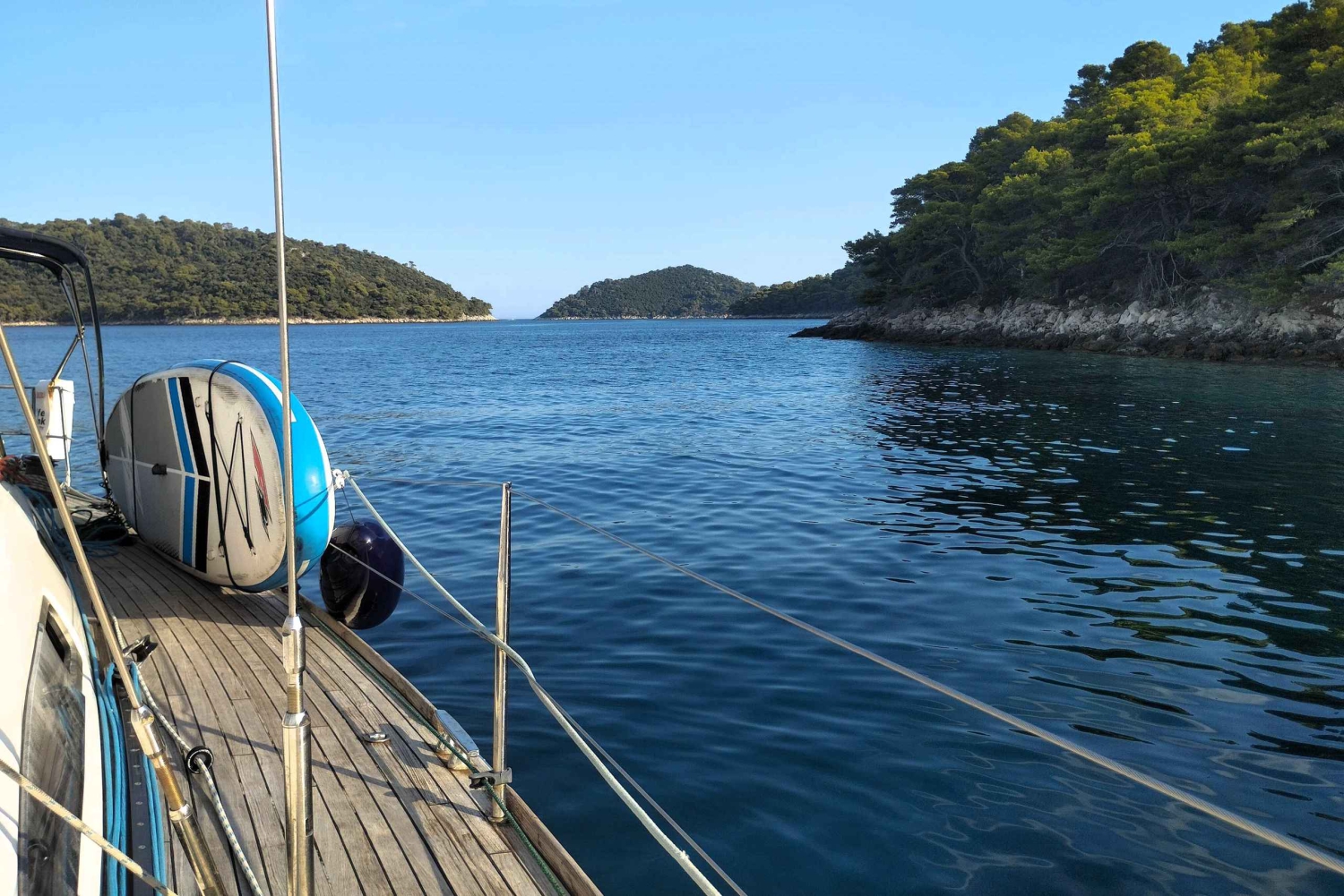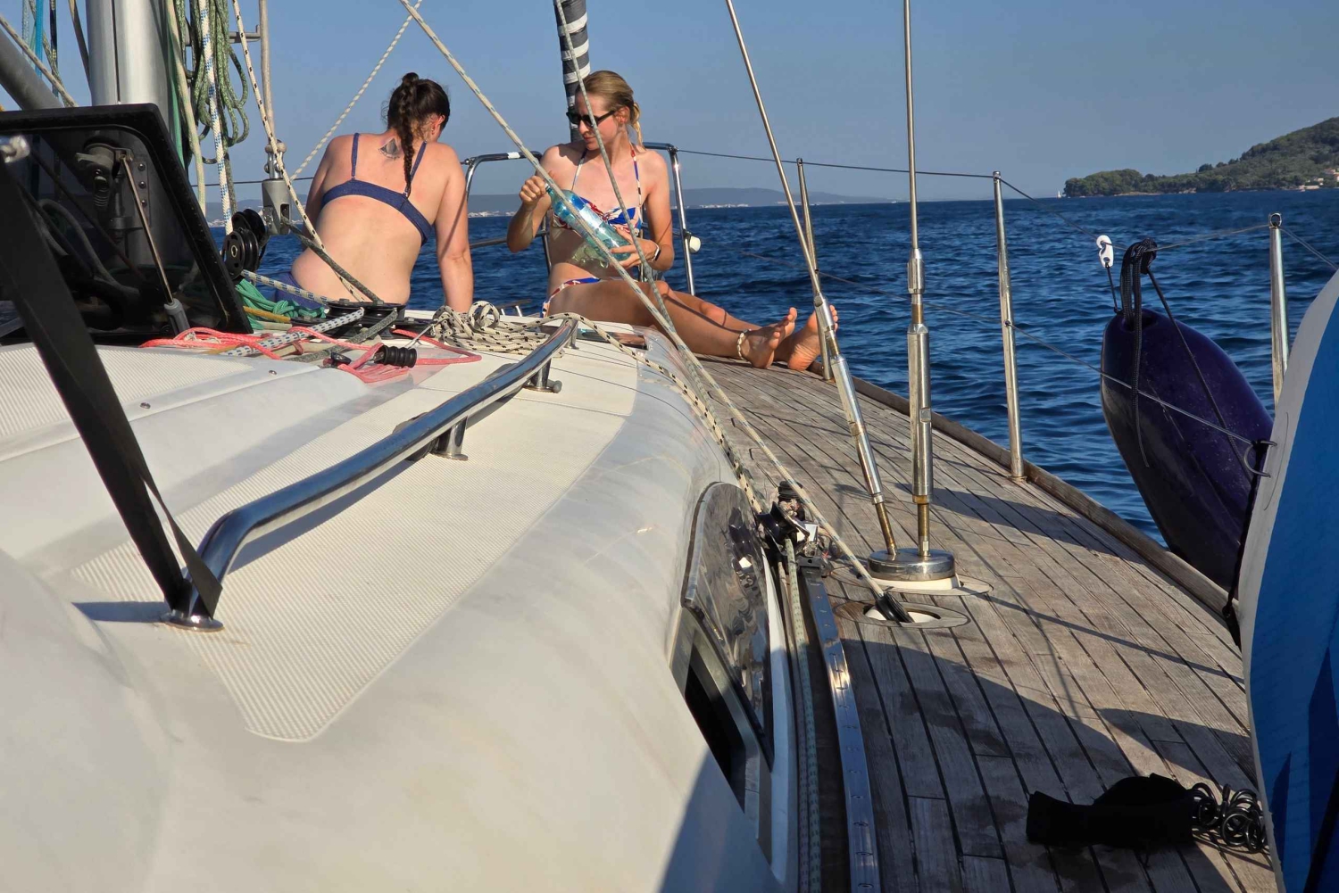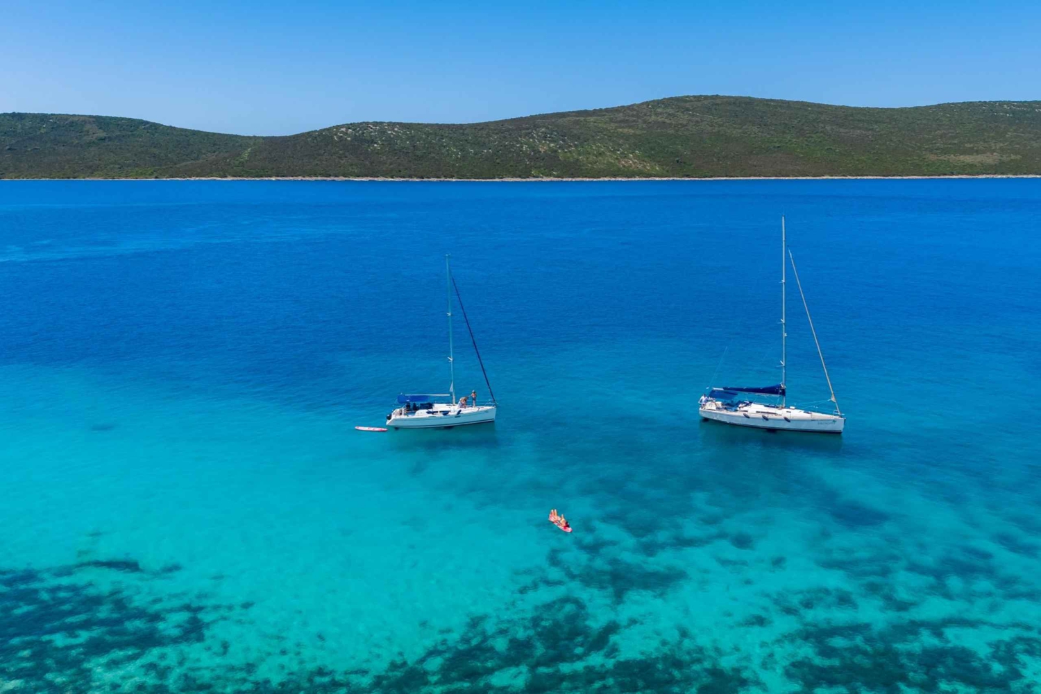 Oplev en dag med sejlads: Du kan nyde sejlads, SUP, snorkling og vandaktiviteter – eller bare ligge på dækket og nyde solen. Gæsterne kan slappe af på en af vores komfortable sejlbåde, hvor de kan benytte kahytter, toiletter, fuldt udstyret køkken og køleskab. Cockpittet er udstyret med sædehynder, sprayhood og bimini-overdækning for fuld komfort. Du kan have det sjovt med vores SUP-brædder, slæbetove og snorkeludstyr. Vores skipper sejler dig til Zadar-øerne med to eller tre stop for svømning, snorkling, SUP og frokost. Ruten og stopene tilpasses dagligt efter vejrforholdene. INKLUDERET: skipper, sejlbåd, SUP, snorkeludstyr, velkomstdrink, øl, vand på flaske.Includes
