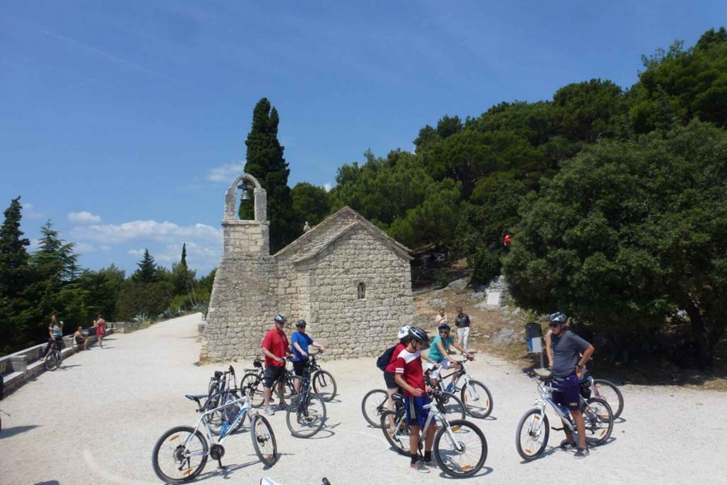 Mødestedet for dit 3-timers cykeleventyr er havnen i Split. Begynd din tur med at udforske det gamle marked og de smalle gader ved det 1.700 år gamle Diocletian-palads og Đardin-parken, og oplev det travle gadeliv i byens centrum. Oplev den afslappende energi på Marjan-bakken, når du kører gennem fyrreskovenes kølige skygger, og nyd udsigten over marinaen og de andre bakker, der omgiver byen. Når du har nået Marjan-kapellet, fører din guide dig op ad bakke, og du får en fantastisk udsigt over strandene omkring byen og øerne i havet. Se Sankt Hieronymus-kapellet fra det 15. århundrede og Eremitagen, der er bygget ind i en grotte. Når du når toppen af den 178 meter høje bakke, går du mod øst og beundrer panoramaudsigten fra Vidilica. Næste stop er Sustipan, en gammel bypark, der ligger på klipperne lige over havet. Herfra cykler du forbi byens største marina, nyder en tur langs den berømte bypromenade og slutter din tur i byens centrum.Includes