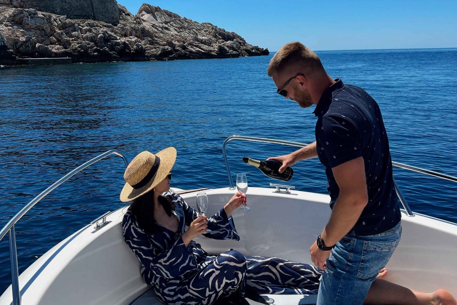 Deine Reise beginnt in Dubrovnik, Ort Gruž. Von dort sind es ca. 25 Minuten bis zum ersten Stopp auf der Insel Kolocep, der Blauen Höhle. Danach kannst du selbst entscheiden, wohin du fahren möchtest. Wir empfehlen dir den Sandstrand Sunj, die Insel Lopud, die Insel Kolocep und viele andere geheime Buchten, die du mit deinem Skipper entdecken wirst! Dies ist eine private Tour, bei der nur du auf dem Boot bist und du deine eigene Tour machen kannst. Du bekommst auch Getränke an Bord. Es gibt unsere reguläre Getränkekarte und wenn du Wünsche hast, musst du sie am Vortag bestellen. Der Treibstoff ist nicht im Preis enthalten. Den Treibstoff bezahlst du nach der Fahrt (ca. 50 Euro).Includes