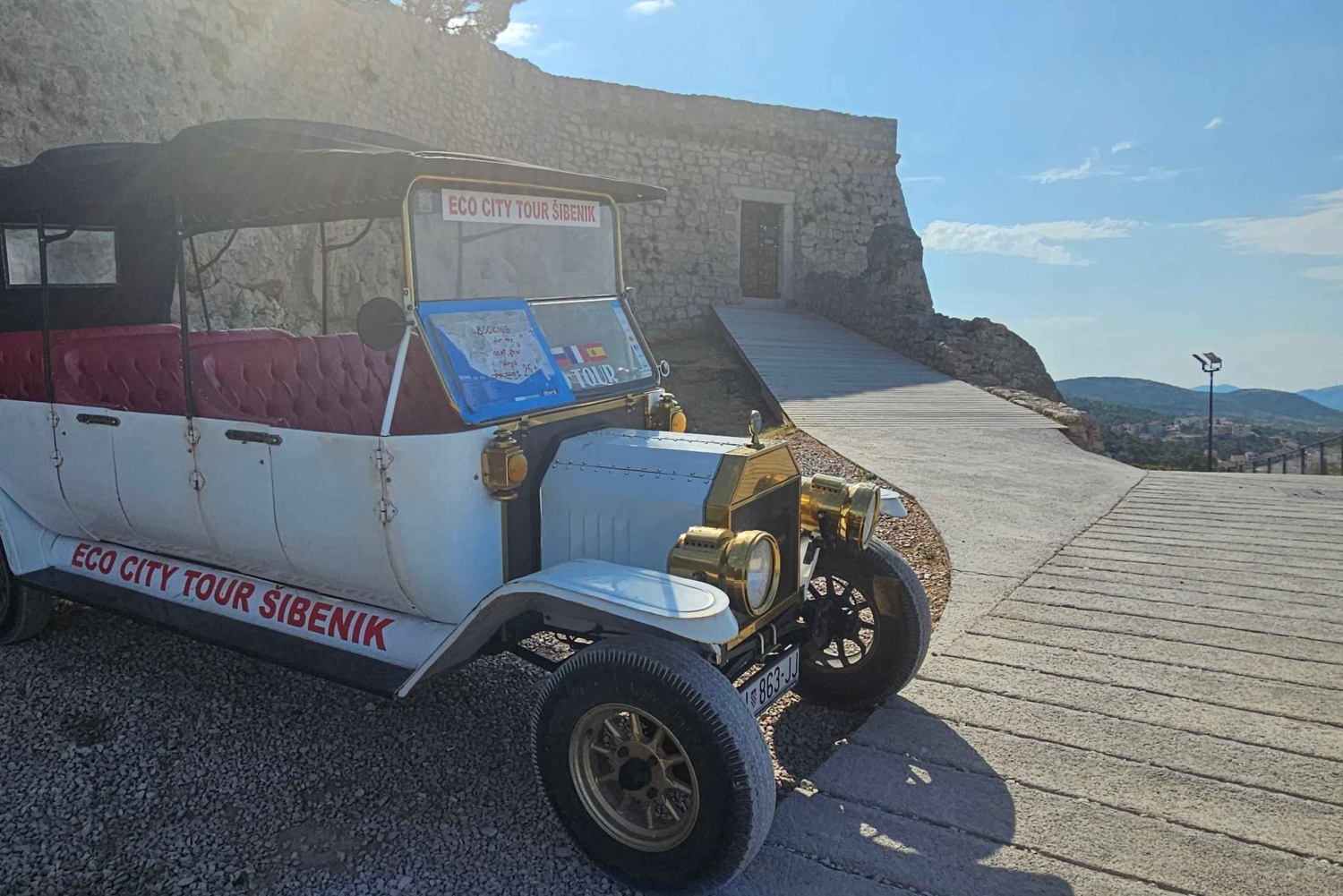 2 Stunden Sightseeing Fahrt im Retro-Fahrzeug mit Fahrer Teilweise Besichtigung von Šibenik und Fotostopps Tickets für die FestungImportant Information