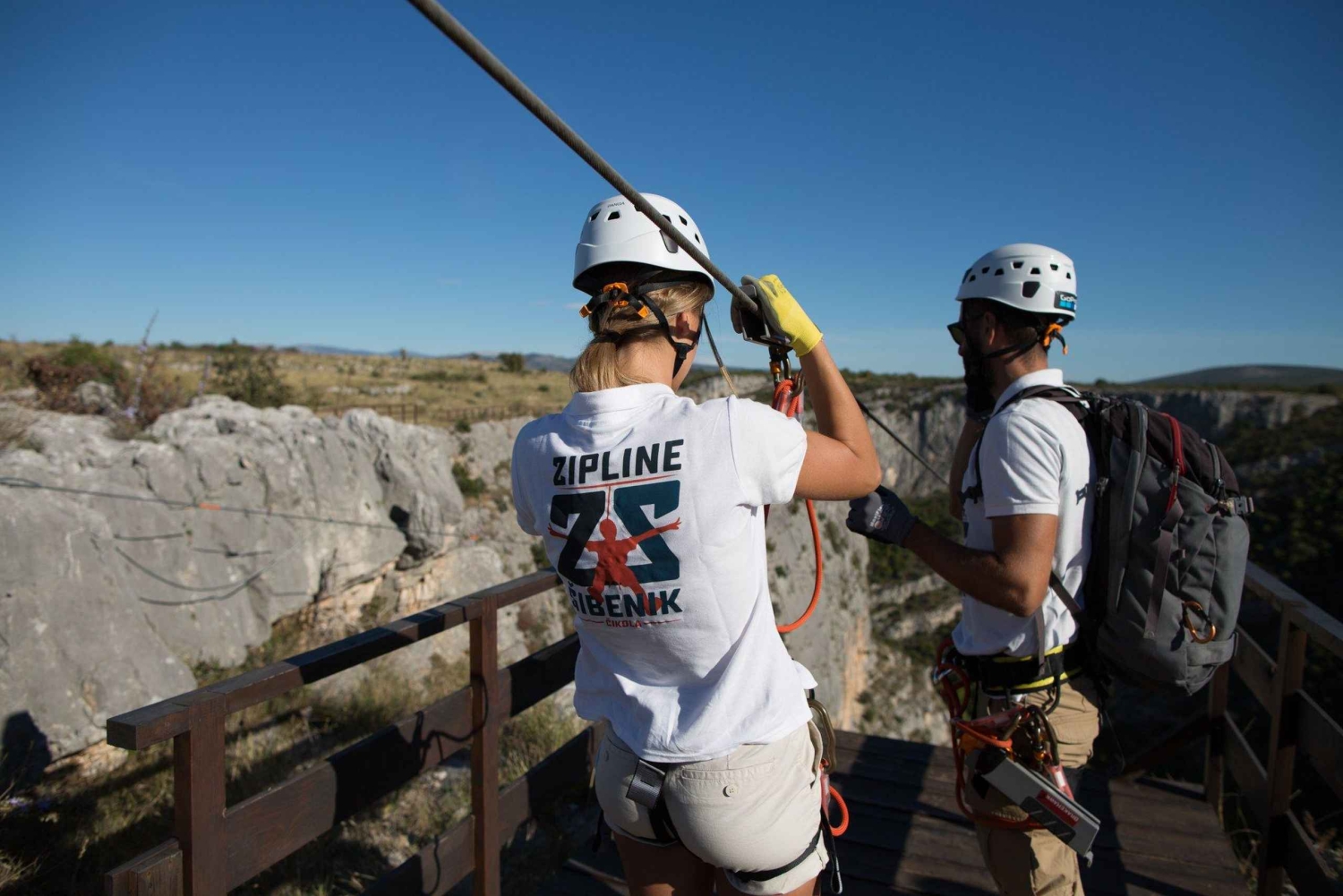 Der Blick auf die Landschaft der Čikola-Schlucht ist atemberaubend, besonders wenn du sie von oben betrachtest. Wir können dir garantieren, dass du mit dem Wind in den Haaren über die Baumstämme und Schluchten schwebst! Begib dich mit uns auf ein 1,4 km langes Zipline-Abenteuer, das deinen Adrenalinspiegel in die Höhe treibt und dir den ersehnten Kick verschafft. Du wirst die atemberaubende Landschaft der Čikola-Schlucht aus 120 bis 30 m Höhe sehen. Auf den drei Leinen von 250, 500 und 650 m Länge erlebst du eine Geschwindigkeit von bis zu 70 km/h oder nimmst dir einen Moment Zeit, um die Natur um dich herum zu genießen. Zip-lining ist ein lustiges und aufregendes Abenteuer, bei dem du mit einem Gurt an einem Seil befestigt durch die Luft gleitest. Unser Ziel ist es, deinen Urlaub mit diesem Ausflug aufzupeppen, der für Familien und Singles geeignet ist. Du kannst wählen, ob du dich zu zweit oder allein unter der Aufsicht unserer erfahrenen Tourguides abseilen möchtest.Includes