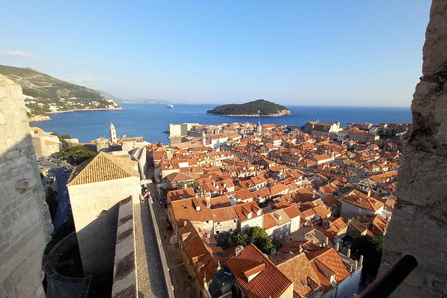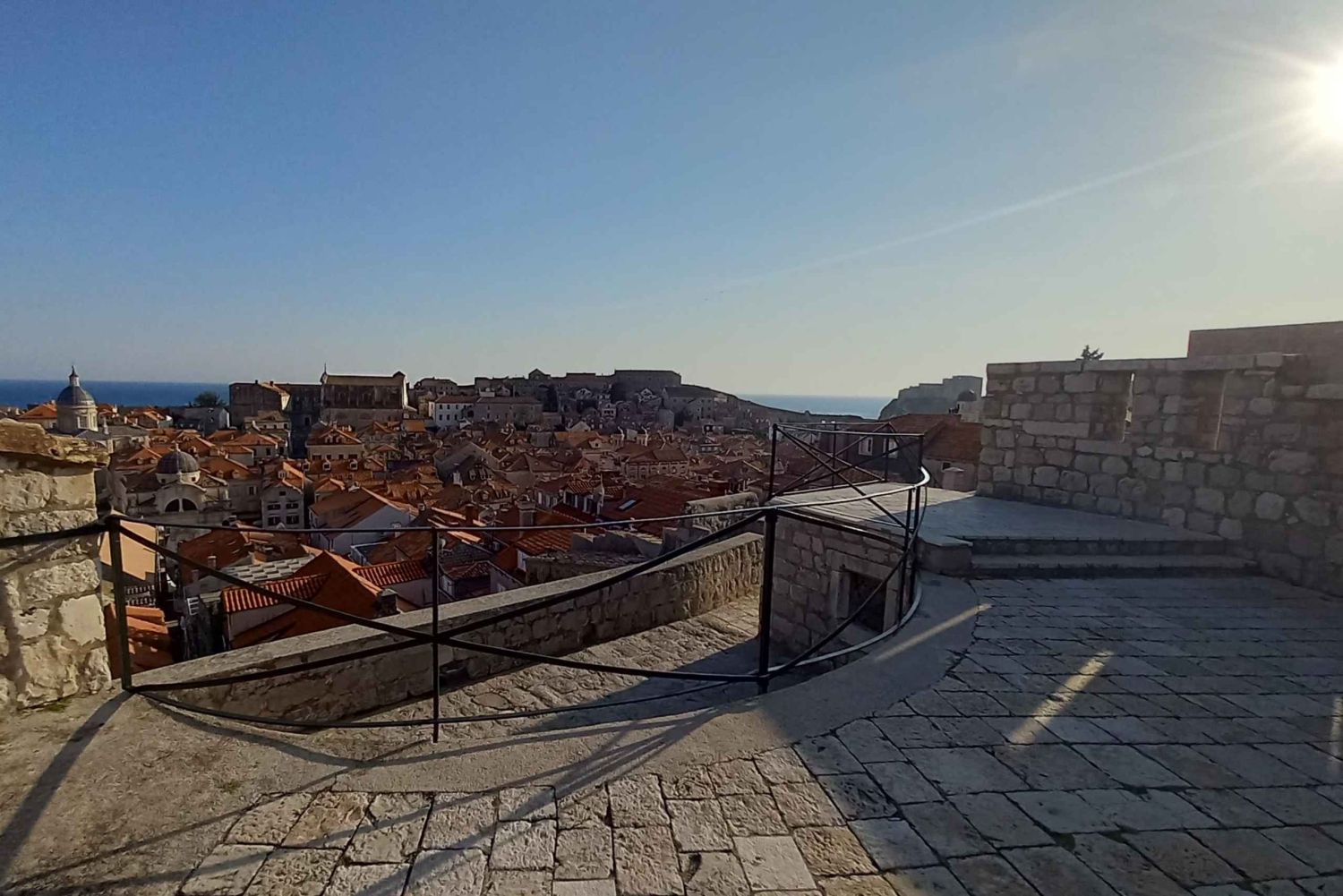 - Bitte denke daran, dass es auf den Stadtmauern von Dubrovnik viele Treppen gibt! Die Tour führt über fünf Treppen, die vom Eingang bis zur Hälfte der Strecke hoch und runter führen. An manchen Stellen sind die Mauern ziemlich hoch und die Treppen steil. Bitte beachte das. Auch der südliche Abschnitt, den du alleine begehst, hat an manchen Stellen schmale Gehwege. Vergiss nicht, dass die Mauern ein mittelalterliches Bauwerk sind, eine militärische Anlage, die vor Hunderten von Jahren gebaut wurde - erwarte nicht, dass die Mauern immer superbequem und einfach sind ;)