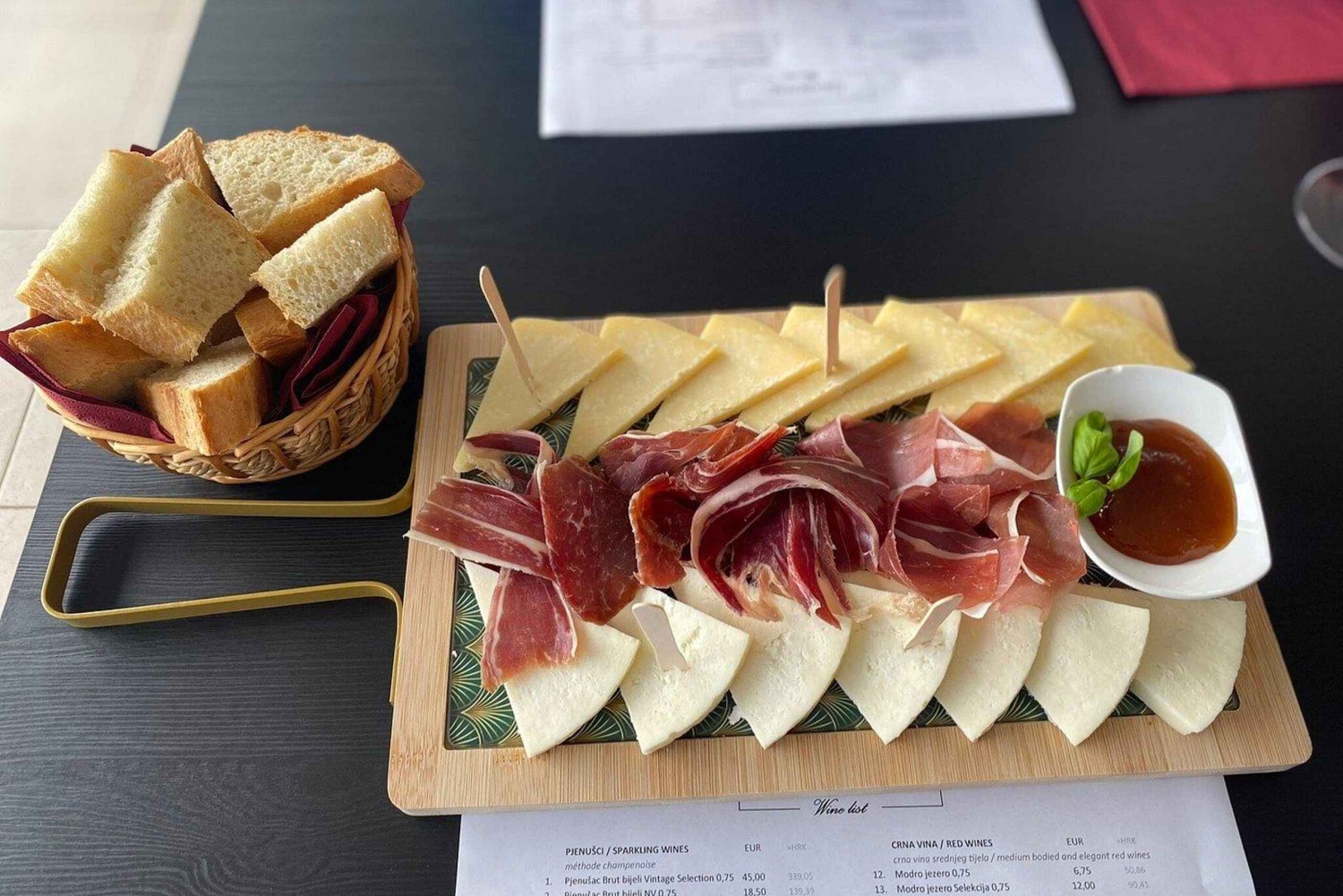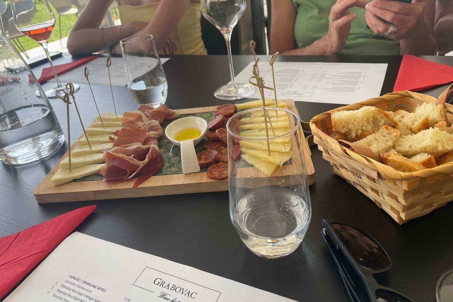 Wir freuen uns, unsere neueste Tour anbieten zu können: eine Weinverkostung auf dem charmanten Weingut Grabovac, das nur eine kurze Fahrt von Makarska entfernt liegt. Von Makarska aus fährst du stilvoll und bequem in unseren modernen, klimatisierten Fahrzeugen. Unterwegs hältst du an den atemberaubenden Imotski-Seen, die für ihr kristallklares Wasser und ihre dramatischen Klippen bekannt sind. Nimm dir etwas Zeit, um Fotos von der atemberaubenden Landschaft zu schießen, bevor wir zum Weingut weiterfahren. Das Weingut Grabovac ist ein Familienbetrieb, der schon seit Generationen hochwertige Weine herstellt. Du wirst von unseren freundlichen Gastgebern begrüßt, die dich durch eine Verkostung von fünf ihrer besten Weine führen, die jeweils mit köstlichen lokalen Käsesorten und geräuchertem Schinken begleitet werden. Erfahre mehr über die Traditionen der Weinherstellung in der Region und probiere die einzigartigen Aromen der lokalen Rebsorten. Nach der Weinprobe kannst du einen Spaziergang durch die Weinberge machen und die friedliche Umgebung genießen. Du hast etwas Zeit, um Flaschen deiner Lieblingsweine zu kaufen und sie mit nach Hause zu nehmen oder als Geschenk für deine Liebsten mitzunehmen. Unsere Tour zur Weinverkostung in Grabovac ist die perfekte Möglichkeit, einen gemütlichen Nachmittag in der malerischen kroatischen Landschaft zu verbringen. Die Tour dauert etwa 4-5 Stunden und du wirst entspannt und zufrieden nach Makarska zurückkehren. Buche jetzt deine Tour und mach dich bereit, das Beste der kroatischen Weinkultur mit uns zu erleben!Includes