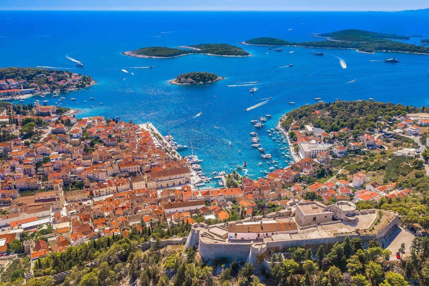En esta excursión en lancha rápida, tendrás la oportunidad de experimentar la belleza y los atractivos diversos de estos destinos. Desde el animado e histórico ambiente de Hvar, las idílicas y pintorescas Islas Pakleni, la tranquila y deslumbrante Budikovac, hasta la dramática y apartada Cala Stiniva, cada lugar ofrece algo único e inolvidable. En una lancha rápida con cómodos asientos y sombrilla, tendrás la oportunidad de descubrir la Cueva Azul. Esto es lo que puedes esperar: La Cueva Azul, una de las atracciones más famosas de la isla de Biševo. Esta maravilla natural es conocida por su hipnotizante luz azul, creada cuando la luz del sol entra por una abertura submarina, reflejándose en el fondo del mar e iluminando la cueva con un mágico resplandor azul (el ticket de entrada a la Cueva Azul NO está incluido en el precio). La ciudad de Hvar, la principal de la isla, es famosa por sus murallas del siglo XIII, una fortaleza en lo alto de una colina que ofrece vistas panorámicas, y la hermosa catedral de San Esteban, de la época renacentista. La ciudad de Hvar también cuenta con un bullicioso puerto lleno de yates y una animada vida nocturna con numerosos bares, clubes y restaurantes. Las islas Pakleni (también conocidas como islas Paklinski) son un impresionante archipiélago situado frente a la costa suroeste de Hvar. Son conocidas por sus aguas cristalinas, sus calas escondidas y su exuberante vegetación. Budikovac es una pequeña y tranquila isla cercana a Vis, conocida por su impresionante Laguna Azul, una hermosa bahía poco profunda de aguas turquesas increíblemente transparentes, ideal para nadar, bucear y relajarse. La laguna está relativamente poco concurrida, lo que proporciona un retiro tranquilo. La Cala de Stiniva, en la isla de Vis, es famosa por su belleza única y espectacular. La Cala Stiniva se abre a una impresionante playa de guijarros rodeada de imponentes acantilados. La naturaleza solitaria de la cala la convierte en la favorita de quienes buscan escapar de las multitudes. Las aguas de la cala son perfectas para nadar y bucear, y ofrecen una visión clara del mundo submarino.Includes