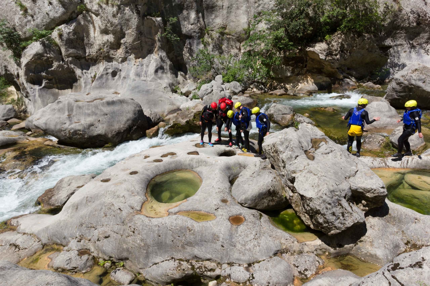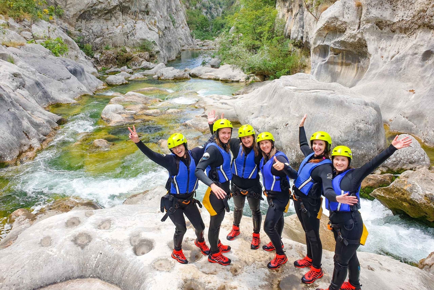 Sal de Split y viaja en autobús lanzadera al pueblo de Zadvarje, en el río Cetina, para participar en una emocionante aventura de barranquismo entre las rocas y cascadas de un cañón de 200 metros de profundidad. Reúnete con tus guías titulados a tu llegada y recoge todo el equipo necesario para ayudarte a navegar por el cañón con seguridad. Escucha las instrucciones de seguridad y, a continuación, toma un corto trayecto en coche hasta el punto de partida para abrirte paso por las aguas cristalinas del río utilizando diferentes técnicas. Nada por piscinas naturales, camina de roca en roca y desciende en rappel por los emocionantes rápidos. Sube la adrenalina al encontrarte con túneles subterráneos de camino a las poderosas cascadas de la cascada de Gubavica. Recupera el aliento y encuéntrate en medio de la naturaleza virgen antes de la caminata de vuelta. Llega a una boca de roca de fácil acceso, donde tu conductor te estará esperando para llevarte de vuelta a Split.Includes