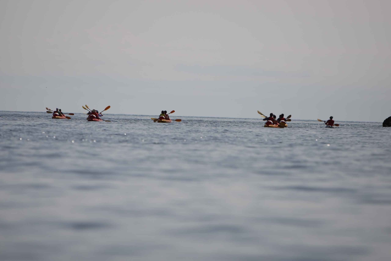 - Se requiere un nivel básico de forma física, ya que hay que remar durante 1,5 horas (con descansos). Por favor, consultad la previsión meteorológica (especialmente el viento si no tenéis experiencia previa o si tenéis previsto realizar la excursión con niños) antes de hacer la reserva. Hacemos todo lo posible por cancelar las excursiones con antelación en caso de mal tiempo, pero a veces las cancelaciones pueden producirse poco antes del inicio de la excursión. En tal caso, podéis cambiar la fecha o recibir un reembolso. Se requiere un mínimo de 4 participantes para que la excursión se lleve a cabo. Si no se alcanza el mínimo, la excursión se cancelará y podrás reprogramarla o recibir un reembolso. Utilizamos kayaks dobles sit-on-top (dos personas por kayak). Los kayaks individuales solo se utilizan en situaciones específicas y no se pueden reservar con antelación ni solicitar. Los niños pequeños (edad mínima 5 años) pueden sentarse en el centro del kayak. Las personas que no saben nadar pueden participar en la excursión si el mar está en calma. Cuando el mar está agitado, se ofrecerá un reembolso o un cambio de fecha.