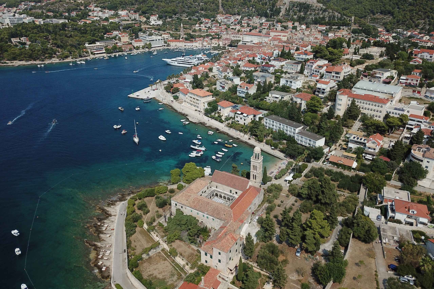 1. Isla Galesnik (paso por delante): la casa de la isla Galsenik se renovó por completo en 2023 y se utilizará para celebrar bodas. 2. Jerolim (paso por delante): es especialmente conocida por su playa nudista, que atrae a visitantes que buscan una experiencia más liberadora para tomar el sol. 3. Bar Carpe Diem (paso por delante): durante el día, Carpe Diem ofrece una relajante experiencia en la playa, pero por la noche se transforma en un animado local nocturno con música. 4. Playa de Mlini (laguna de Mlini y Ždrilca): es una encantadora playa de guijarros enclavada en una pintoresca bahía. Los visitantes pueden disfrutar de un baño en sus aguas cristalinas o simplemente relajarse en la playa y tomar el sol. 30 minutos 5. Islas Pakleni - Parada - Mientras flotas cerca de las islas Pakleni y disfrutas de los tonos dorados de la puesta de sol, vivirás un momento cautivador de tranquilidad y belleza. 20 minutos 6. Regreso a Hvar: Cuando el sol se despide definitivamente, proyectando un cálido resplandor en el horizonte, tu barco comienza tranquilamente su viaje de regreso a la animada ciudad de Hvar.Includes