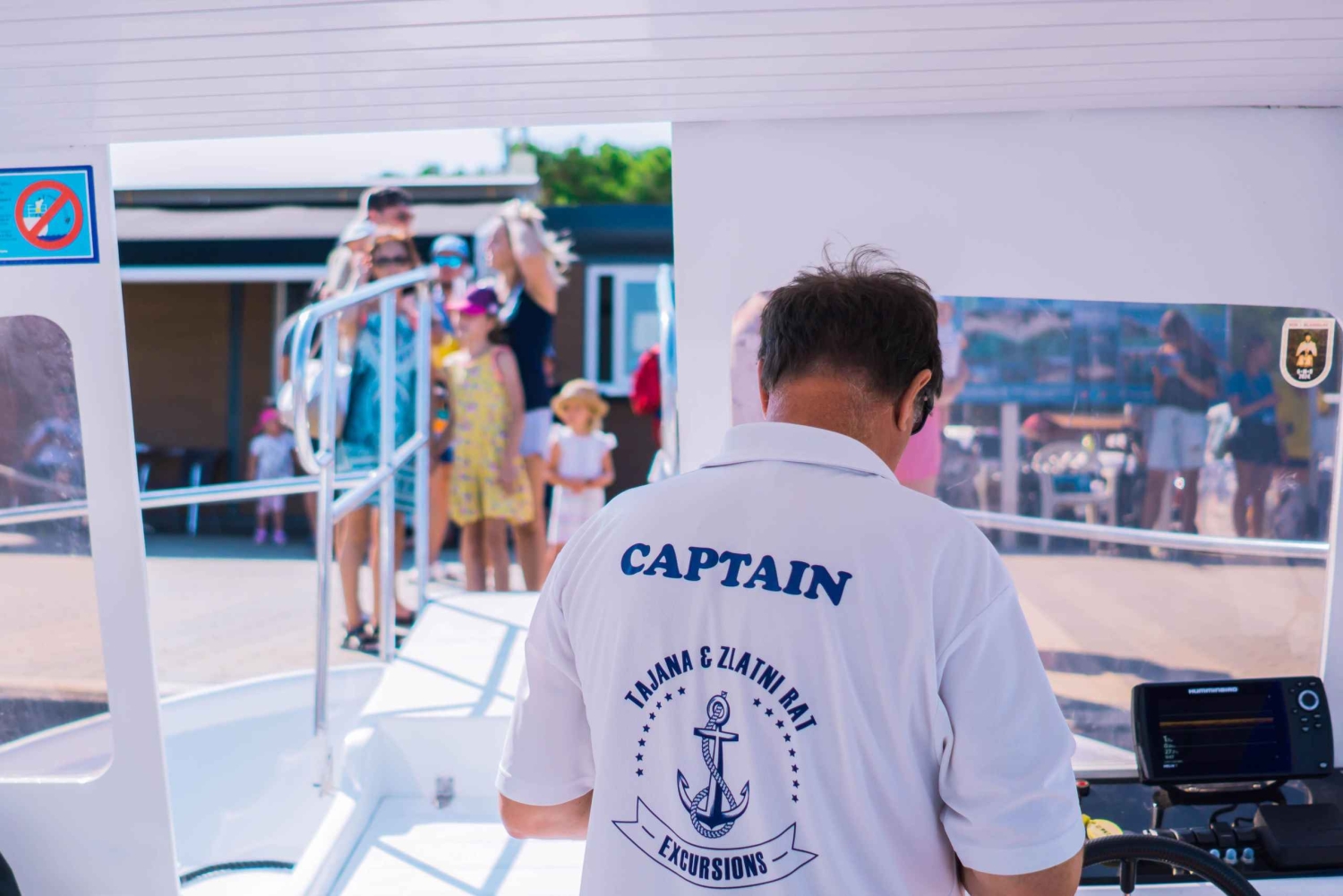 Disfruta de un recorrido panorámico mientras observas el fascinante fondo marino en un tour en barco con fondo de cristal. Anima a tus hijos con un fantástico paseo en barco y date un baño en las aguas protegidas del Parque Natural de Kamenjak. Explora la cueva escondida de Golumber entre los acantilados y vive la experiencia de dar de comer a multitud de peces locales del Adriático. Sal del puerto de Medulin y navega hacia el archipiélago de Medulin. No pierdas la oportunidad de tomar fotos fantásticas de uno de los faros más grandes de Croacia, el faro de Porer, construido en 1846 durante la monarquía austrohúngara. Esta es la excursión en barco más corta de la oferta y es perfecta para familias. Dado que el viaje dura solo 3 horas, también se recomienda a todos aquellos que disfrutan de los paseos en barco cortos. ¡Importante! ¡La seguridad es lo primero! En caso de mal tiempo o malas condiciones del mar, nos reservamos el derecho de cambiar la ruta o cancelar la excursión por el bien de todos los pasajeros. Esta decisión la toma únicamente el capitán.Includes