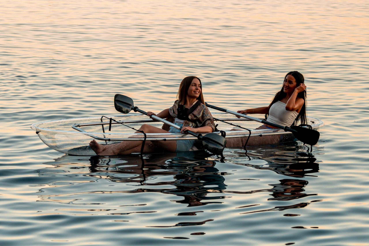 - Observa el mundo submarino bajo tus pies mientras remas en un kayak transparente