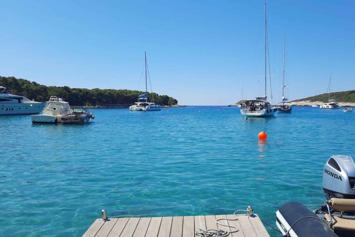 Disfruta de la belleza de Croacia desde el agua en este increíble tour en lancha rápida desde Split. Reúnete en la oficina del proveedor de la actividad en Split y guarda cualquier equipaje que no quieras llevar contigo (envíanos un correo electrónico si necesitas consigna para el equipaje). Dirígete al barco y emprende tu aventura por la isla con la brisa marina acariciándote el cabello. 1. Llegada a la hermosa ciudad costera de Milna, en la isla de Brač, famosa por su pintoresco puerto, sus coloridos barcos pesqueros y su antigua arquitectura de piedra. Disfruta de tiempo libre para empaparte de la tranquilidad de este pueblo dálmata y de las hermosas vistas del Mediterráneo antes de navegar hacia la ciudad de Hvar, en la isla del mismo nombre. 2. Llegada a la ciudad de Hvar, un destino muy popular entre viajeros y famosos. Tiempo libre en Hvar para explorar el teatro más antiguo de Europa, los palacios venecianos y la fortaleza de Fortica, o para disfrutar de una fantástica oferta gastronómica. Pasea por el casco antiguo y descubre sus numerosos encantos, admira las vistas desde la fortaleza de Fortica, compra recuerdos o relájate en las playas de Hvar. 3. Aventúrate a las islas Pakleni, donde podrás hacer una parada para nadar en este impresionante archipiélago de unos 10 kilómetros de largo y 16 islas. Relájate en el famoso Carpe Diem. Sumérgete en aguas cristalinas y explora el mundo submarino con el equipo de snorkel incluido. 4. Haz una parada en Maslinica, un encantador pueblo costero conocido por su tranquila belleza. Con un pintoresco puerto, casas tradicionales de piedra y exuberantes olivares, es un lugar ideal para relajarse. Pasa el tiempo nadando, descansando y descubriendo esta auténtica isla, que sigue siendo tranquila y serena, mostrando su belleza natural. 5. Después de Maslinica, visita la famosa Laguna Azul, una de las playas más bonitas del Adriático. Déjate envolver por la naturaleza virgen y sumérgete en aguas cristalinas. Nada, practica snorkel y toma el sol bajo el sol mediterráneo. 6. Nuestra última parada es la playa de Labadusa. Disfruta nadando, practicando snorkel y relajándote en el chiringuito. Haz fotos de esta impresionante zona antes de regresar a Split y poner fin a tu inolvidable aventura. *Detalles del transporte: Viajarás en una lancha rápida, ideal para un transporte seguro, rápido y emocionante. Nuestra experimentada tripulación se asegurará de que llegues a tu destino de ensueño de forma segura, rápida y cómoda. Nuestra embarcación tiene capacidad para solo 12 personas, por lo que podrás disfrutar de nuestra costa en un entorno más privado.Includes