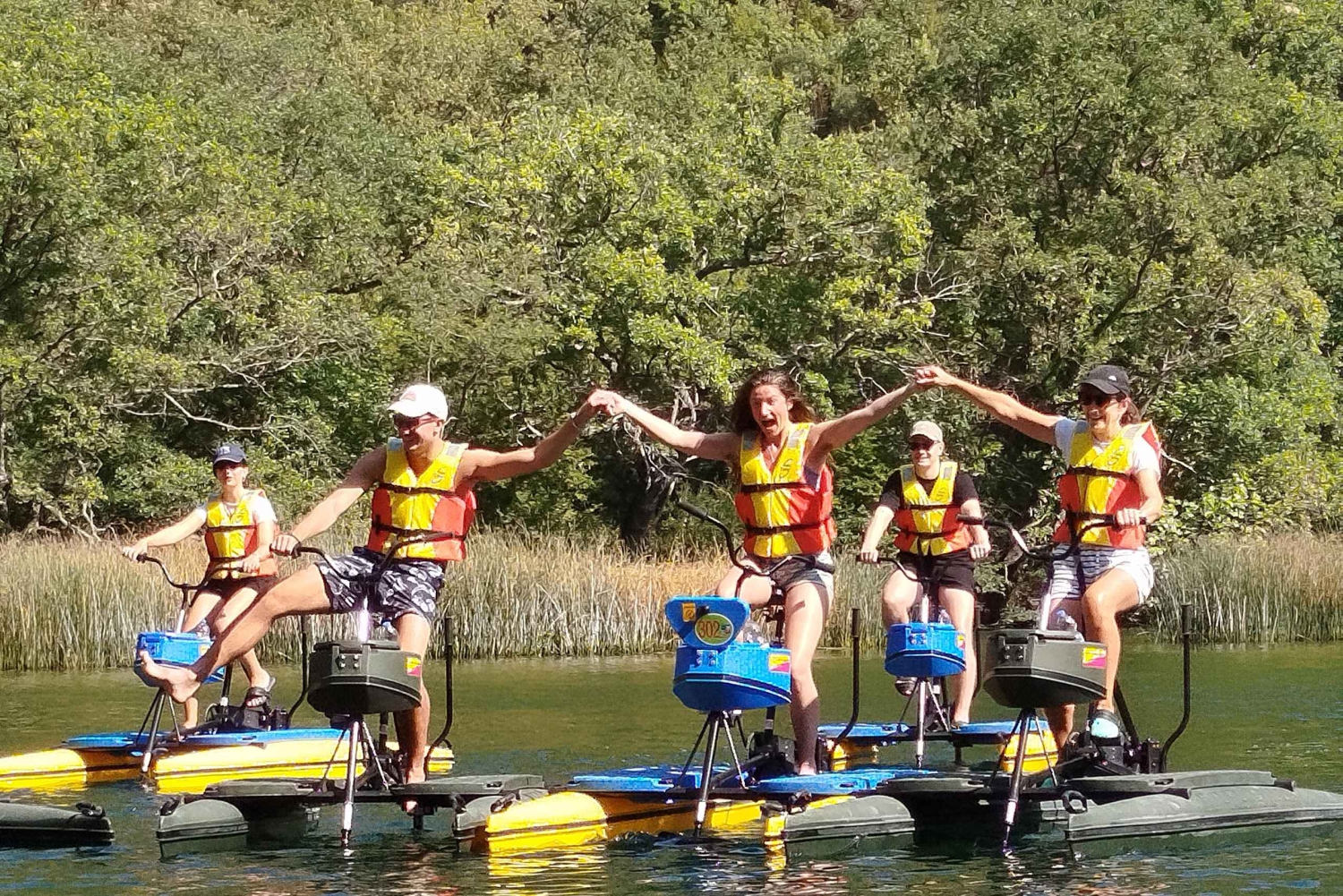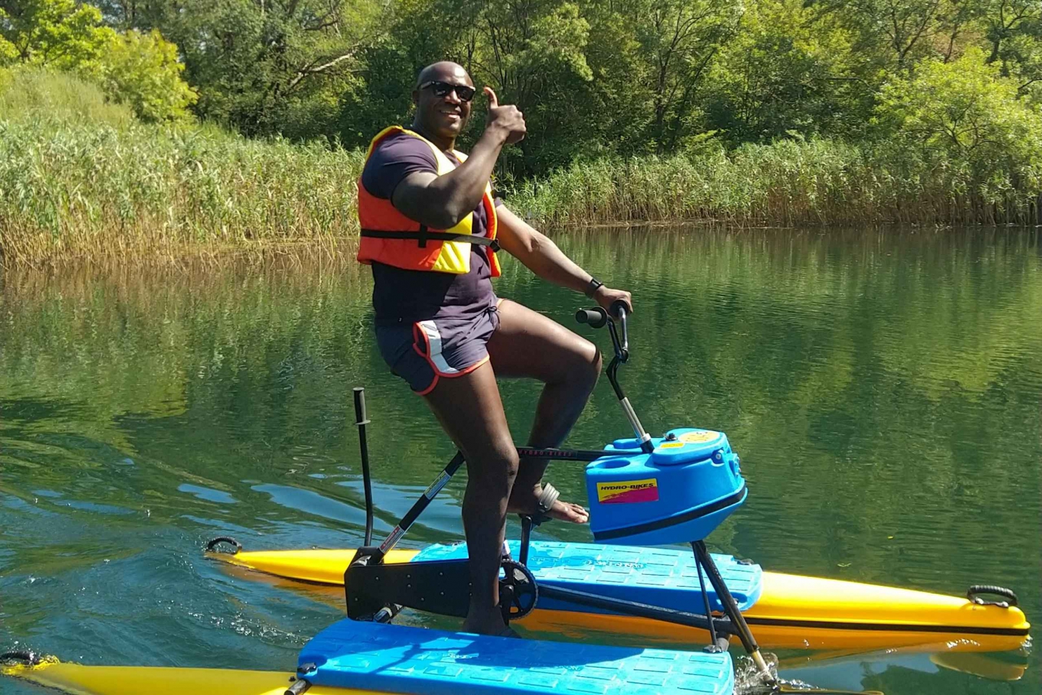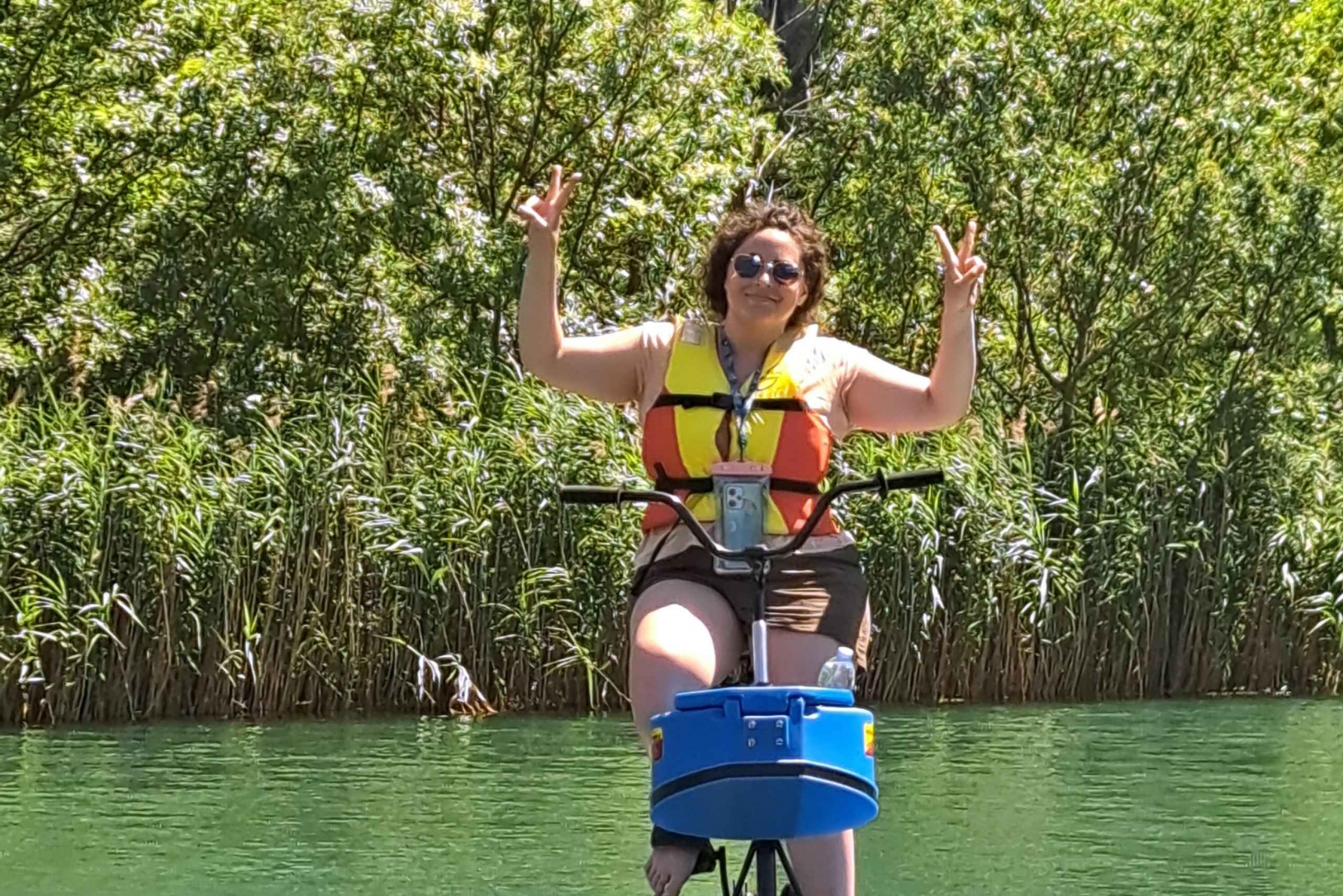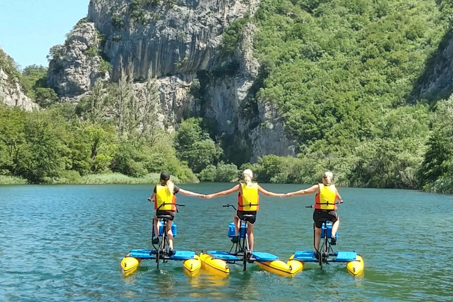 Escapa de lo ordinario y embárcate en una aventura única y emocionante en el hermoso parque del río Cetina, en Omiš. Participa en una forma ecológica de explorar el impresionante paisaje y tomar el sol en el agua. Tu viaje comienza en nuestra propiedad, situada a 5 km de Omiš, y ése es también el punto final. Desde ese punto bajamos 4 km por el río y volvemos, 8 km en total. Relájate con una bicicleta apta para profesionales o principiantes, y perfecta para todas las edades y capacidades. Deslízate en bicicletas especialmente diseñadas para una conducción suave y fácil sobre el agua. Disfruta de la serenidad en tu viaje con bicicletas creadas para ser estables y que puedas centrarte en el paisaje. Pedalea a una velocidad de hasta 12 km/h sintiéndote siempre seguro y protegido. Tus bicicletas acuáticas están equipadas con compartimento portaobjetos, portabebidas, flotador personal y asientos cómodos y ajustables para que puedas relajarte mientras pedaleas por el río.Includes