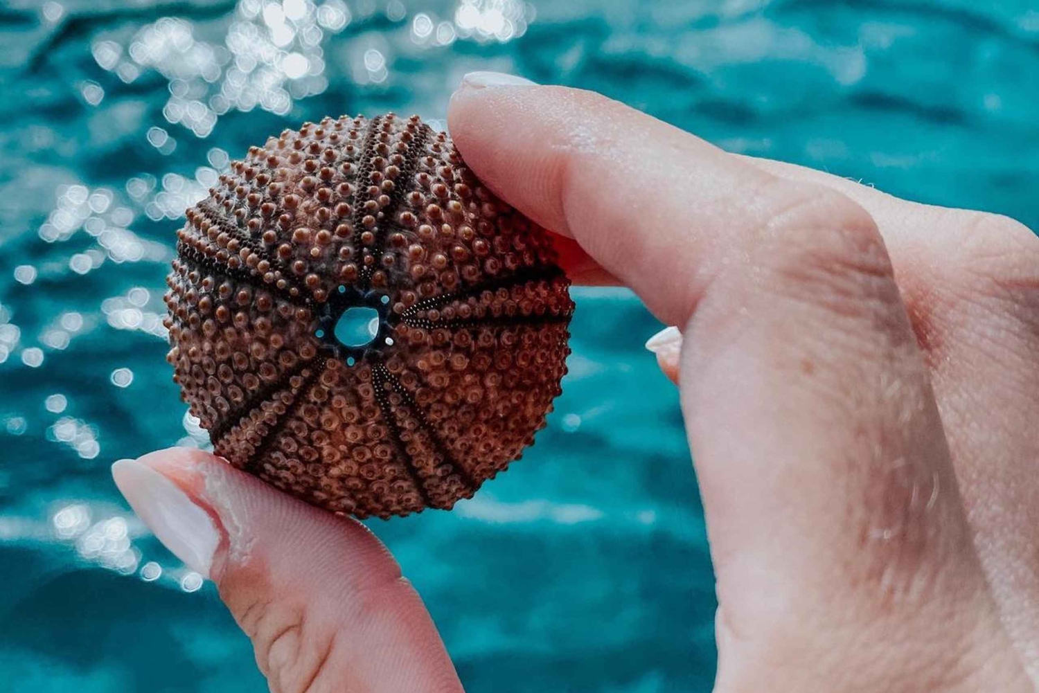 Tour en barco en un barco de madera de 57 años de antigüedad. Agua sin alcohol y zumos. Guía. Equipo de snorkel.Easy cancellation