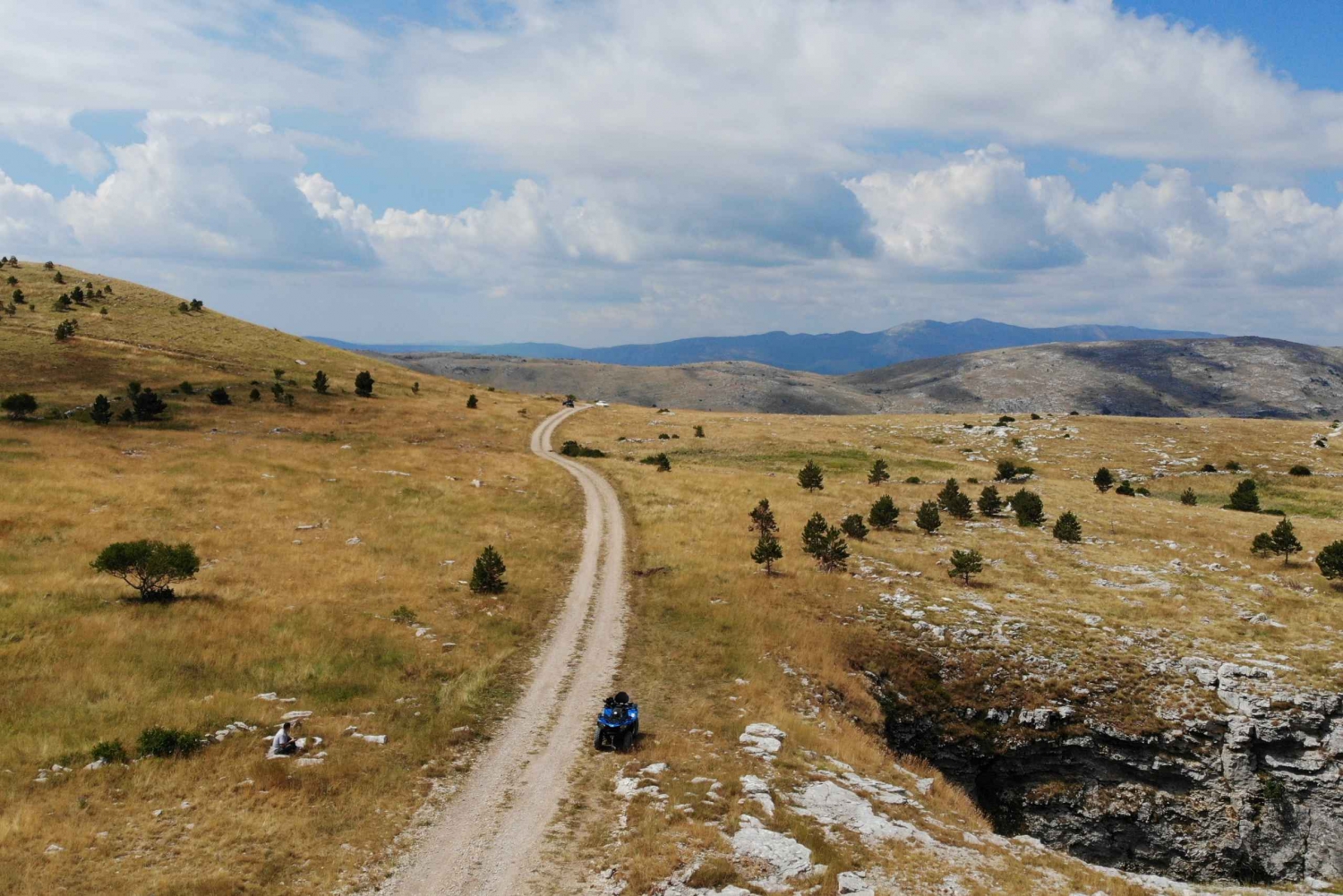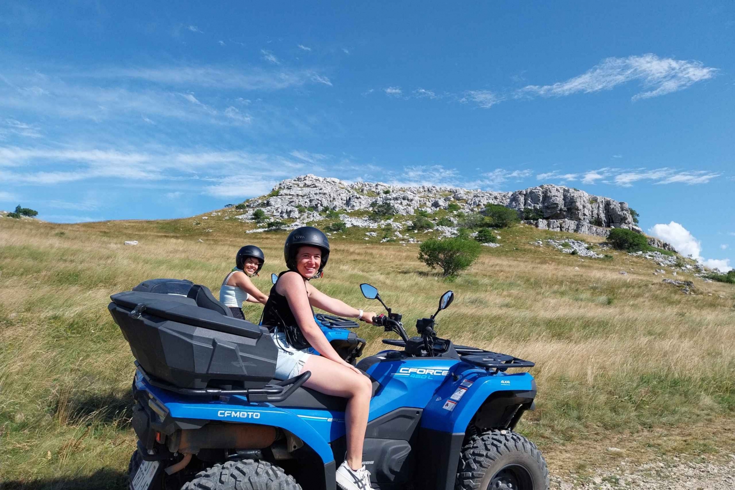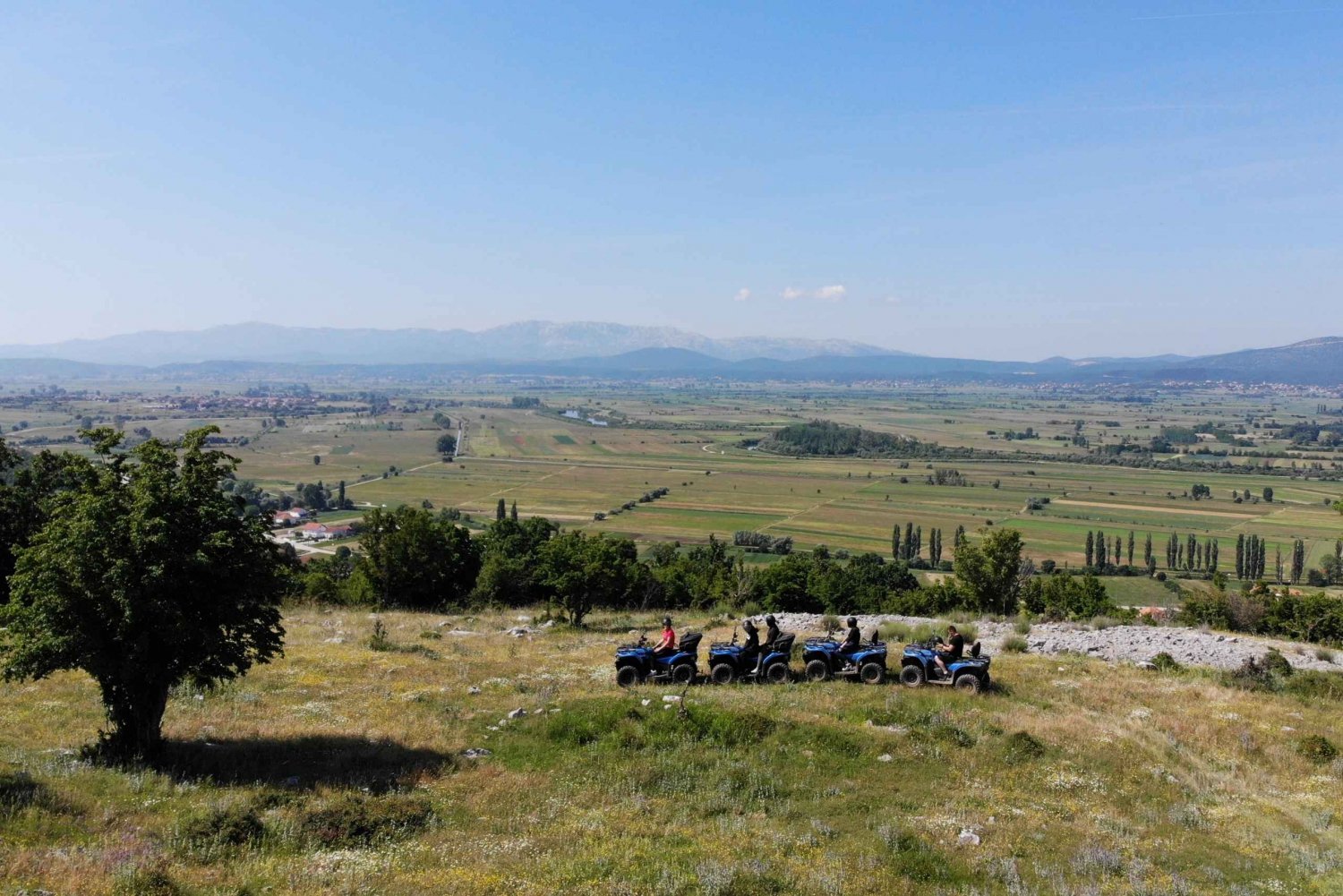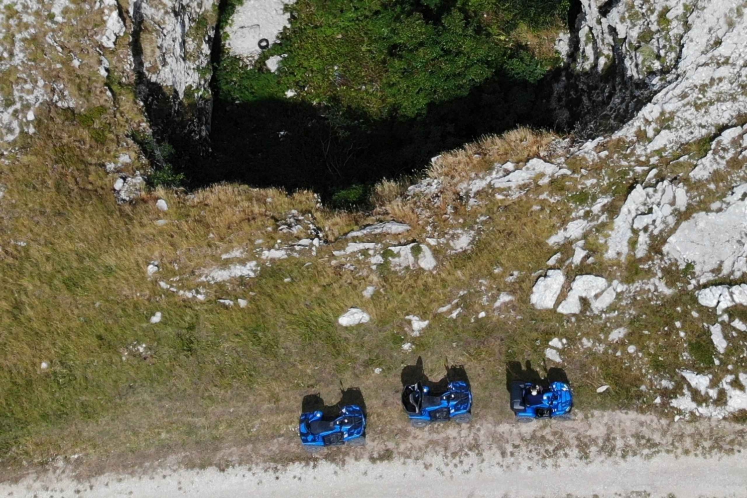 Experience the hidden treasures of the Dalmatian Hinterland, including the captivating landscapes of Dinara Nature Park, on an ATV vehicle tour. Traverse asphalt roads, winding dirt tracks, and mountain paths, all carefully selected for their views. Immerse yourself in the natural wonders of the region as you feel the thrill of riding an ATV, either on your own or with a partner, depending on your chosen tour option. The tour starts in our base camp in Hrvace, which is approximately a 40-minute drive away from Split. If you don't need pickup (only 15 EUR per person for round trip), and you are coming directly to the tour starting point please make sure that you arrive at least 10 minutes before the defined tour start. The starting point is at our base camp, which you can find by simply typing the Quad Experience Cetina in the google maps. Detailed instructions for arriving at the tour's starting point will be provided to you a day in advance via email or text messages.Includes