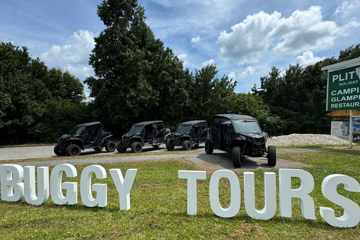 Daily schedule of 2hr long guided tours: 09:00 - 11:00 13:00 - 15:00 17:00 - 19:00 The price is €70 for adults and teenagers, and €55 for children up to 12 years old. We provide Buggy vehicles that can fit 2, 4 or 6 in persons inside the vehicle. Starting point of the tour is in the Grabovac Village, on the main D1 Road, just on the opposite site of the Plitvice Holiday Resort. Parking is provided on the Starting point. The tour lasting 2 hours on MY23 MAVERICK SPORT MAX DPS 1000R Buggies will visit the local Plitvice Lakes National Park highlights: Old town of Drežnik, Željava Airport, Underground 'KLEK' complex, Visit to Village Korana Selo and Old Water Mill Included: 2-hour buggy tour Petrol usage Live tour guide Helmet and safety equipmentImportant Information