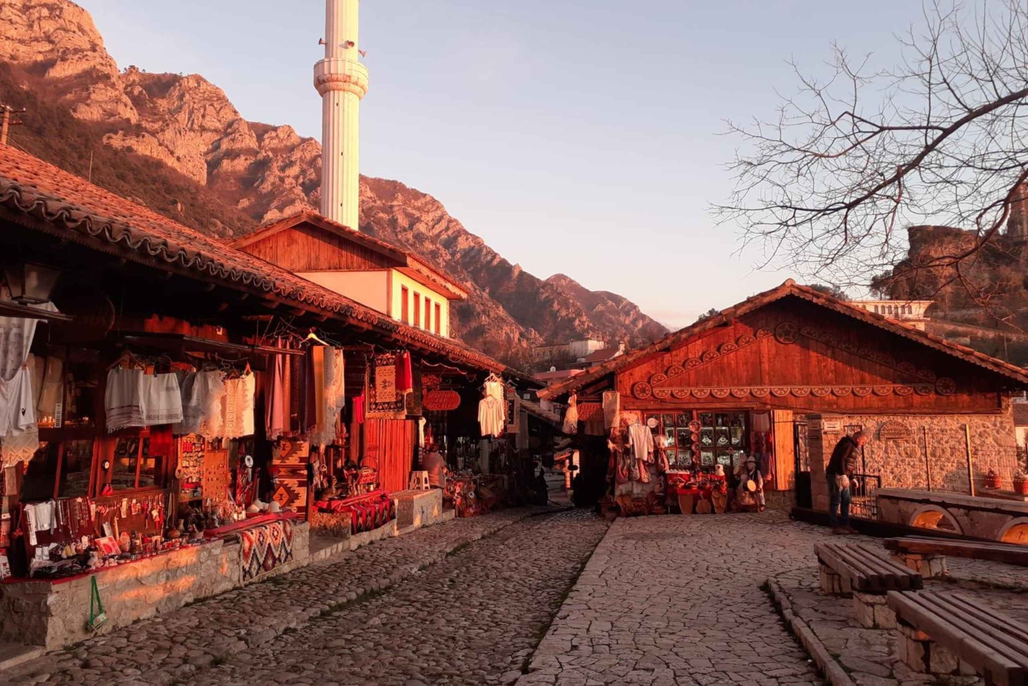 Day 1: Split – Mostar Old Bridge and the Blagaj Monastery. Day 2: Mostar – Sarajevo – Mostar See reminders of the Yugoslav War in bullet holes and cannon marks all around town. Free time. Day 3: Mostar – Kotor – Montenegrin Riviera Kotor, UNESCO World Heritage site. Wander through narrow, cobblestone streets in old town. Free time. Day 4: Montenegrin Riviera – Budva – Sveti Stefan – Shkoder Visit Rozafa Castle. Day 5: Shkoder – Mrizi i Zanave Agrotourism – Prizren Agro-tourism farm with optional lunch in Shkoder. View Prizren from the fortress on the hill. Day 6: Prizren – Gjakove – Decan – Vineyards near Rahovec – Prizren Gjakova bazaar. Monastery of Decan where Orthodox monks still inhabit the monastery. Day 7: Prizren – Kruje – Tirana Kruja’s Medieval Old Bazaar. Free time. Day 8: Day tour of Tirana Local food and walking tour plus BUNKART museum.Includes
