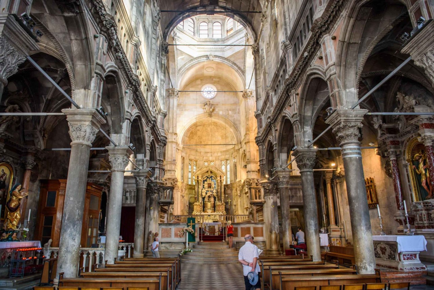 Discover Krka National Park on a guided day tour from Split or Trogir. Witness the Skradinski Buk and beauty of clear water. Your first stop is Skradinski Buk Waterfall for a guided tour of the local area. Many of the stone houses and watermills have now been transformed into small museums with various exhibits. Walk through a network of pathways and wooden bridges near the waterfalls. Enjoy a boat ride down the Krka river canyon, which takes you to the charming town of Skradin that is located within the national park grounds. Relax and swim at Skradin. After, you can enjoy selected wines in local konoba, as well as delicious traditional homemade food like prosciutto, cheese, and bread (optional). Finally, return to Split along the beautiful coastal road, passing picturesque villages and islands.Includes