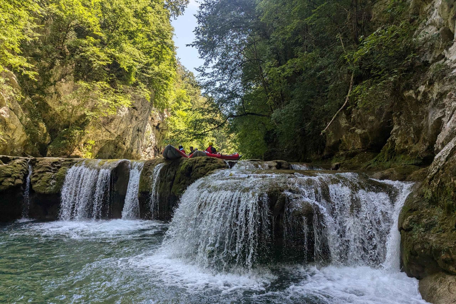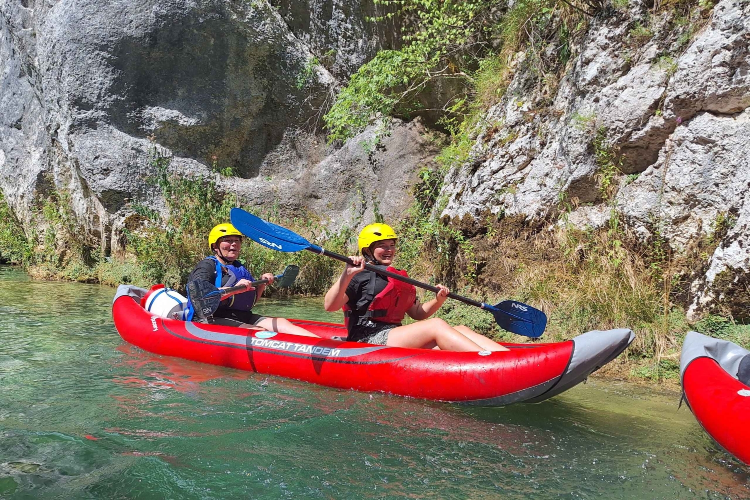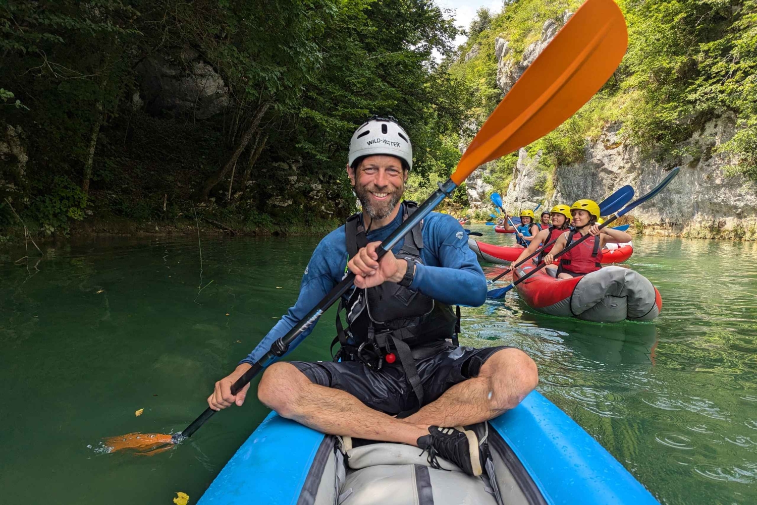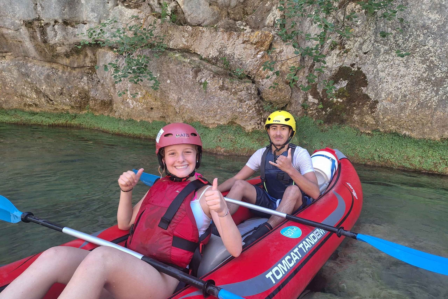 Valmistaudu unohtumattomaan kajakkiretkeen kapean ja syvän kanjonin läpi, jossa on jopa 8 metriä korkeita upeita vesiputouksia. Valmistaudu jännittävään seikkailuun, jossa voit hypätä kallioilta, ottaa uskomattomia valokuvia, kiivetä vesiputouksille ja uida niiden alla. Retkemme tapahtuu Mreznica-kanjonissa, joen yläosassa, joka on täynnä veistettyjä valkoisia kallioita ja rehevää kasvillisuutta. Se on loistava valinta adrenaliinia ja vaikuttavaa maisemaa etsiville. Ammattitaitoiset ja ystävälliset oppaamme huolehtivat turvallisuudestasi ja varmistavat vesiputoukset ja kosket tärkeimmissä kohdissa, jotta matka sujuu mahdollisimman sujuvasti. Kajakkiretki kestää 3–4 tuntia ja sisältää tauon, jonka aikana voit levätä ja ihailla henkeäsalpaavia maisemia. Retki sopii kaikille, ja jopa 6-vuotiaat lapset voivat osallistua vanhempiensa seurassa tähän jännittävään seikkailuun.Includes