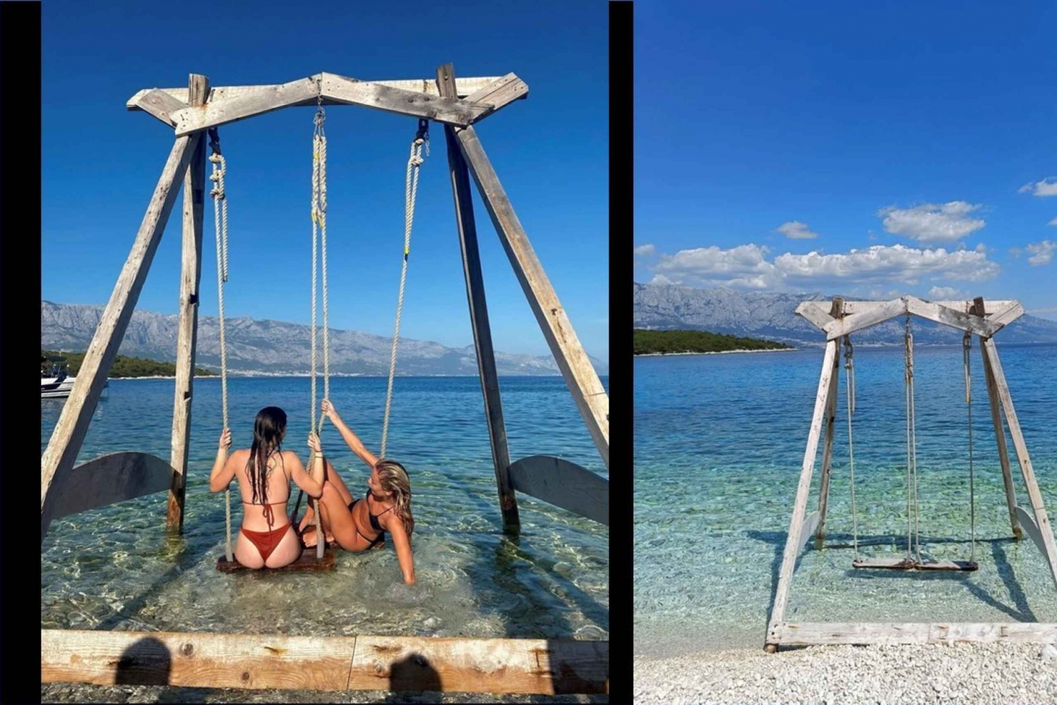 Il tour in motoscafo al tramonto offre una prospettiva diversa della splendida Riviera di Makarska all'uscita dal porto. Scopri la gemma nascosta della Baia di Puntica sull'incantevole Isola di Brač. Rilassati, nuota fuori dalla barca o raggiungi la spiaggia per ammirare le altalene. Questo tour di 90 minuti offre bellezza, tranquillità e panorami affascinanti. ITINERARIO La planata verso Brač da Makarska è un viaggio di soli 20 minuti. La vista della Riviera di Makarska all'uscita dal porto è assolutamente straordinaria. La baia di Puntica ci aspetta: uno scenario da cartolina. Trascorri 40 minuti nuotando e facendo snorkeling. Ammira le altalene della spiaggia che ondeggiano guardando Makarska dall'isola di Brač. Puoi nuotare da un motoscafo mentre la musica suona o raggiungere la spiaggia e fare snorkeling nella baia nascosta. Quando ci accomiatiamo dalla baia di Puntica, potrai ammirare il panorama di Makarska da un'angolazione diversa. Il tramonto dipinge il cielo con vibranti tonalità di oro, arancio e rosa. La bellezza della natura cattura i tuoi sensi. I ricordi creati durante il tour in motoscafo al tramonto rimarranno con te. Fuggi in paradiso per 90 minuti e assisti all'impressionante vista panoramica di Makarska al tramonto. Importante! Ti preghiamo di verificare con noi l'orario preciso di partenza, poiché in estate l'orario del tramonto diminuisce di 2 minuti ogni giorno.Includes