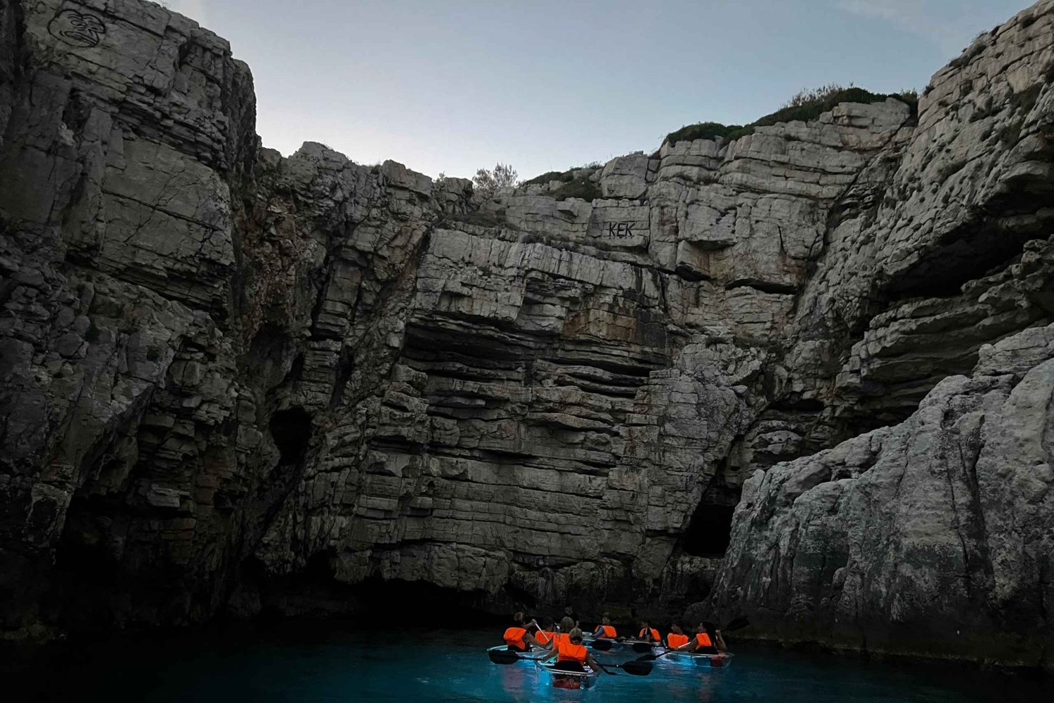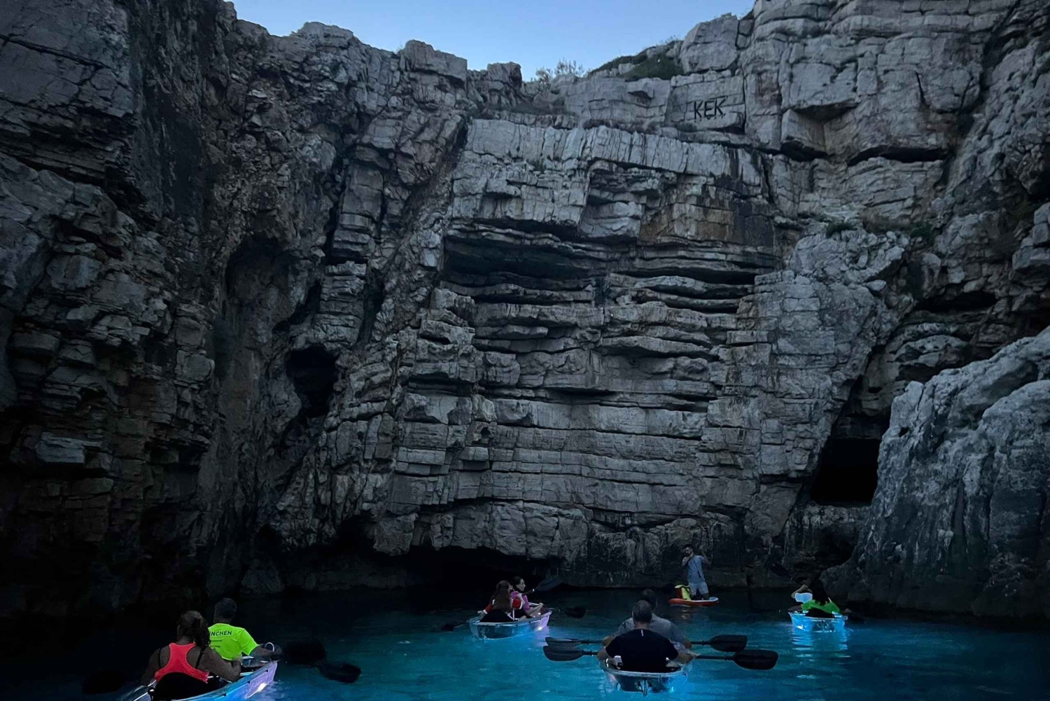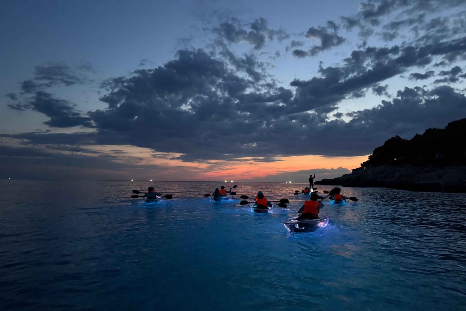 Pola: Tour serale e notturno in kayak trasparente illuminato