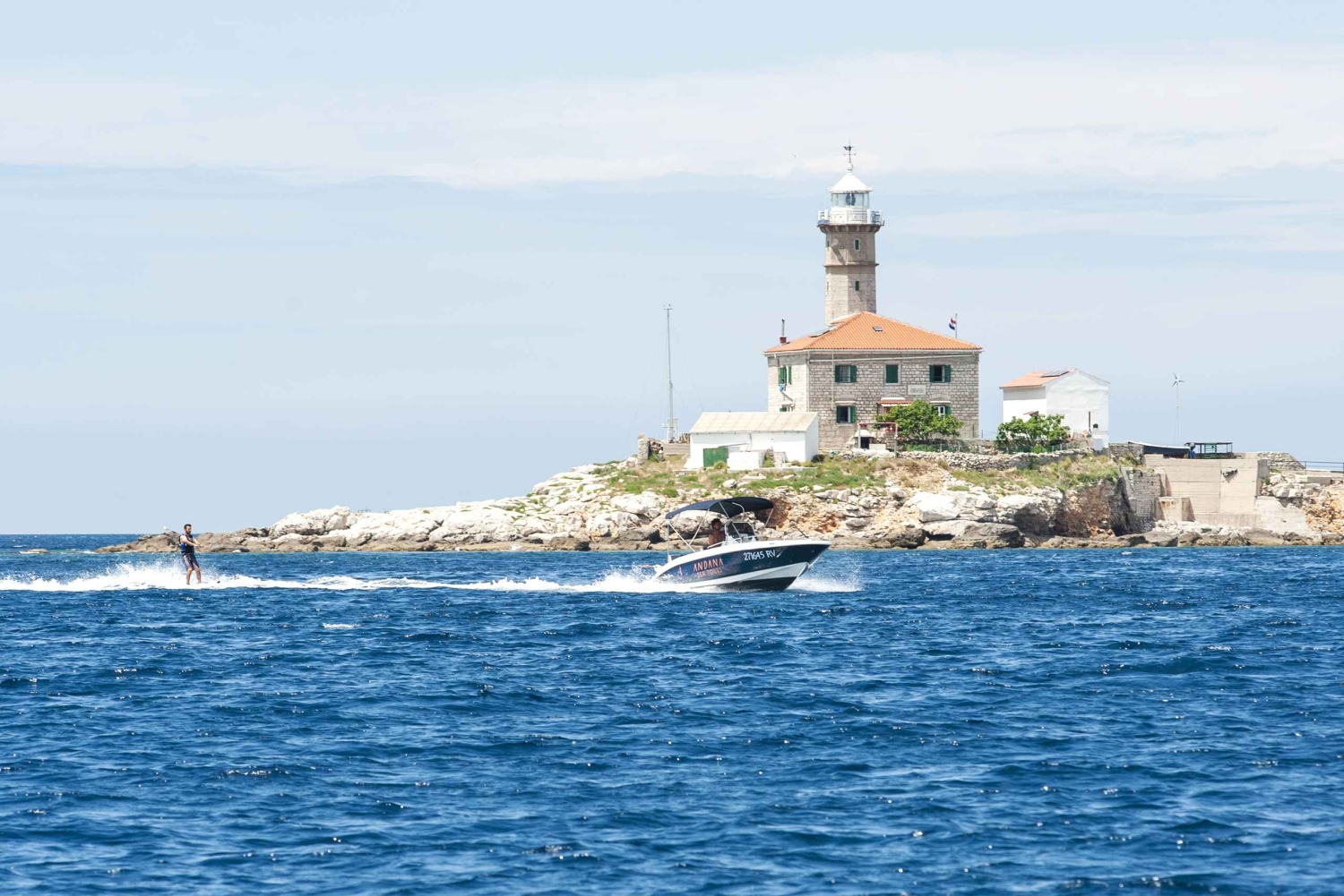 Scopri la straordinaria bellezza dell'arcipelago dell'Isola Rossa, goditi una nuotata o fai snorkeling nelle acque cristalline dell'isola di San Giovanni (Sveti Ivan) o, se sei in cerca di avventura, prova a tuffarti dalla scogliera sull'isola di Katarina. Goditi la navigazione intorno all'Isola Rossa e al faro. Fai un tuffo rinfrescante all'isola di Figarola e rilassati con una bibita fresca mentre prendi il sole. Sulla via del ritorno, goditi il centro storico di Rovigno dal mare e scopri perché è la città più fotografata della Croazia. I nostri esperti skipper saranno lieti di raccontarti storie e leggende locali su Rovigno e dintorni. I motoscafi sono dotati di bimini top, sistema surround Bluetooth e un ampio prendisole, per garantirti un'esperienza confortevole e piacevole in mare. Con una doccia a bordo, puoi facilmente risciacquarti dopo il nuoto. Cosa vedrai e farai: Centro storico di Rovigno: visita la città più fotografata della Croazia. Isola di Figarola: un'isola accogliente con molta ombra, un tipico rifugio per la gente del posto. Perfetta per una nuotata rinfrescante. Isola di Katarina: tuffi facoltativi dalla scogliera di fronte a Rovigno. Isola Rossa: fai un giro in barca. Isola di Sveti Ivan: nuoto e snorkeling Faro: fai un giro in barca intorno al pittoresco faroIncludes