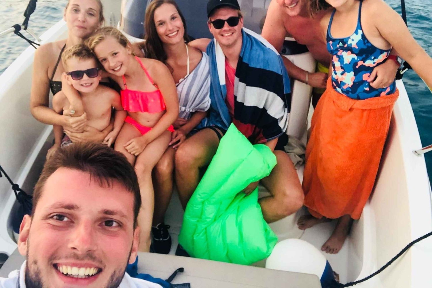 Escursione privata in barca di un'intera giornata Skipper professionista che parla inglese Acqua in bottiglia sulla barca Attrezzatura per lo snorkeling Attrezzatura di sicurezza Giacche a vento CarburanteImportant Information