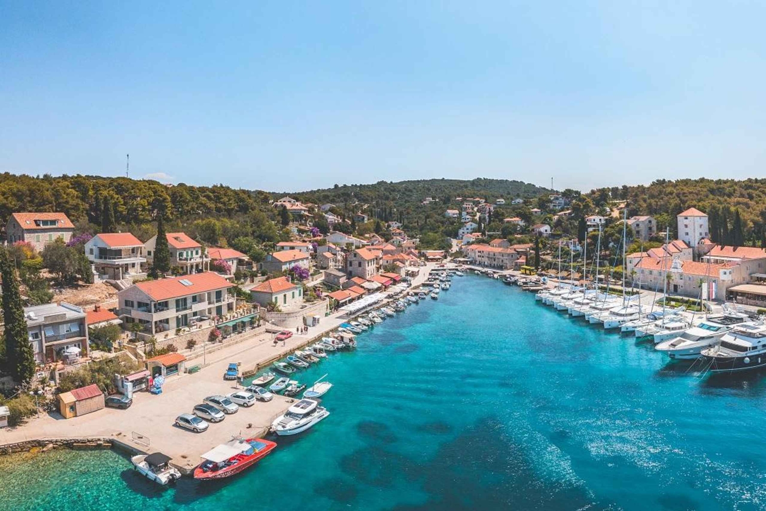 Inizia la tua giornata di divertimento al sole alle 9:00 del mattino presso il punto di incontro prestabilito. Sarai accolto a bordo dal tuo skipper che parla inglese e partirai per la tua escursione. Inizia il divertimento con un giro in motoscafo verso l'isola di Drvenik, ammirando le spettacolari vedute delle isole lungo il percorso. Visita la Blue Lagoon Beach, una delle spiagge più belle della zona. Avrai tempo per nuotare, fare snorkeling o prendere il sole in riva al mare. Poi fai un breve viaggio verso il villaggio di Maslenica sull'isola di Solta. Goditi un po' di tempo libero per esplorare il villaggio, scoprire la vita locale e sorseggiare un caffè. Dopo aver visitato Maslenica, proseguirai verso la Baia di Stomorska. Fermati qui per pranzare in uno dei tanti ottimi ristoranti in riva al mare. Siediti, rilassati e gusta le specialità tradizionali della Dalmazia. Dopo pranzo ti dirigerai verso la Baia di Nečujam, dove potrai fare snorkeling intorno a un relitto. Alla fine della giornata, alle 18:00 tornerai al punto di partenza.Includes