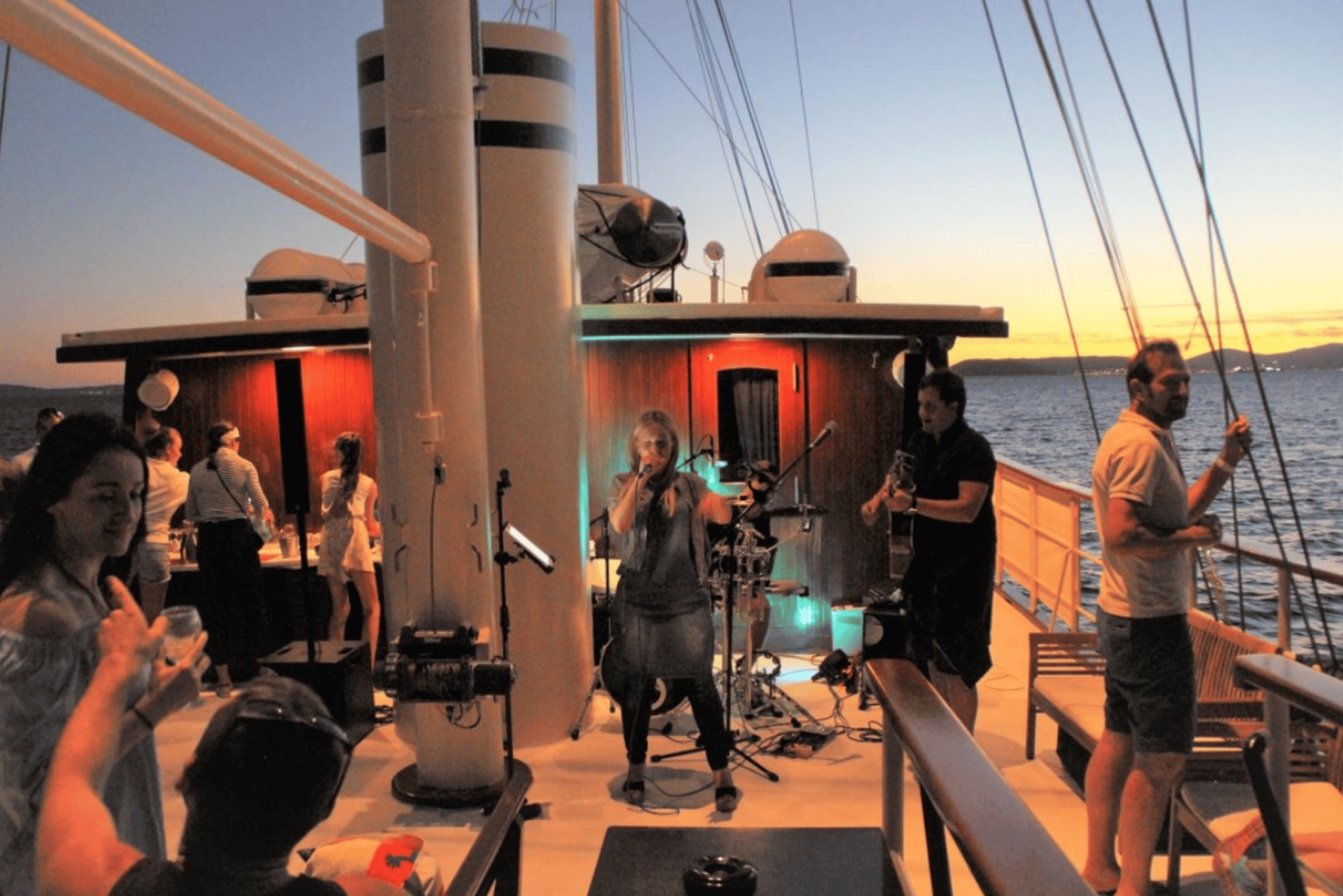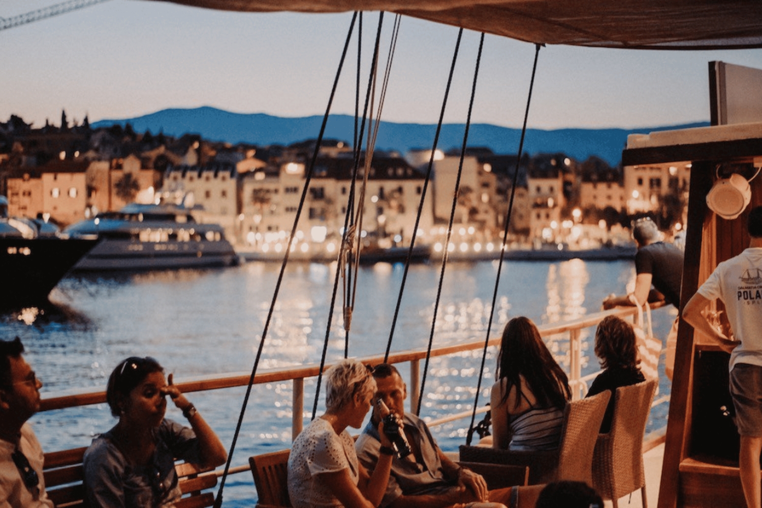 スプリットでの 2 時間のサンセット クルーズを当社で予約してください。オープン デッキでのライブ音楽、クルーズ中はスパークリング ワイン、ワイン、ビール、ソフトドリンクが飲み放題のオープン バーが含まれます。