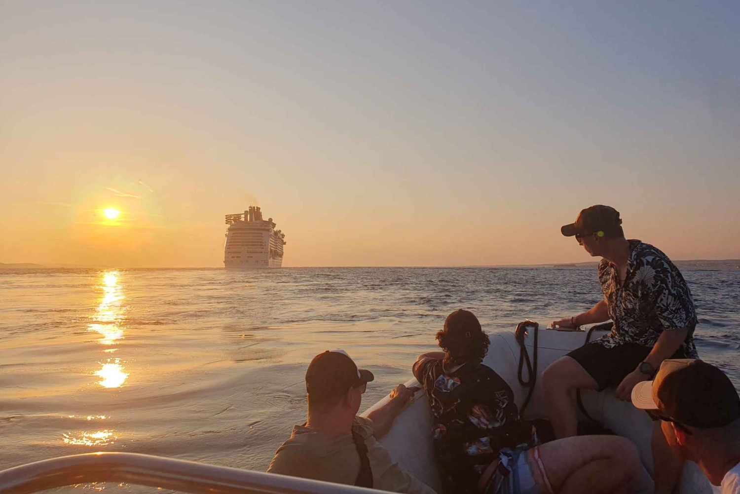 このボートツアーでは、ザダル近郊の魅力的な島々をご案内いたします。お気に入りの音楽を聴きながら、シュノーケリングやスイミングをお楽しみください。ビール、水、アイスティーなどのドリンクでリフレッシュしてください。自家製リキュールもぜひお試しください。船上には、シュノーケリング用具が用意されておりますので、冒険の準備は万端です! 穏やかな海をお好みの方には午前ツアーを、美しい夕日を体験したい方には午後ツアーをお勧めいたします。経験豊富なスキッパーがお客様の安全を確保し、素晴らしいエンターテインメントを提供いたします。彼らはただの運転手ではなく、訪れる場所についての魅力的な物語を語るストーリーテラーでもあります。忘れられない体験をお楽しみいただけますよう、ぜひご参加ください。Includes