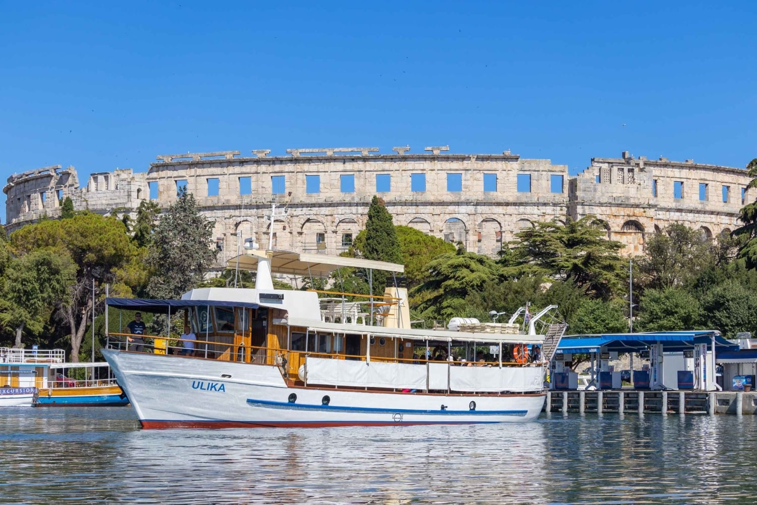 プーラからの伝統的なクロアチアの木製ボートでのクルーズに出かけましょう。イルカを探し、夕日を眺めながら、船上でシェフが調理したできたてのディナーをお楽しみください。 オーストリア ハンガリー君主制の主要港であるポート プーラのパノラマ観光からクルーズを始めましょう。ブリユニ諸島国立公園へのクルージングを続け、シェフがおいしいディナーを準備する間、イルカを探します。 ブリユニ諸島国立公園には、白い砂浜と緑豊かな植物がある 14 の島があります。魚の個体数が多いため、この地域ではイルカが餌を求めて狩りをしているのがよく見られます。 夕食には、サバとサラダ、鶏の胸肉とサラダ、またはベジタリアンのオプションからお選びください。クルーズ中は無制限のミネラル ウォーター、オレンジ ジュース、白ワインが含まれています。 街の素晴らしい夜景とローマの円形劇場である象徴的なプーラ アリーナでプーラ港に戻ります。Includes
