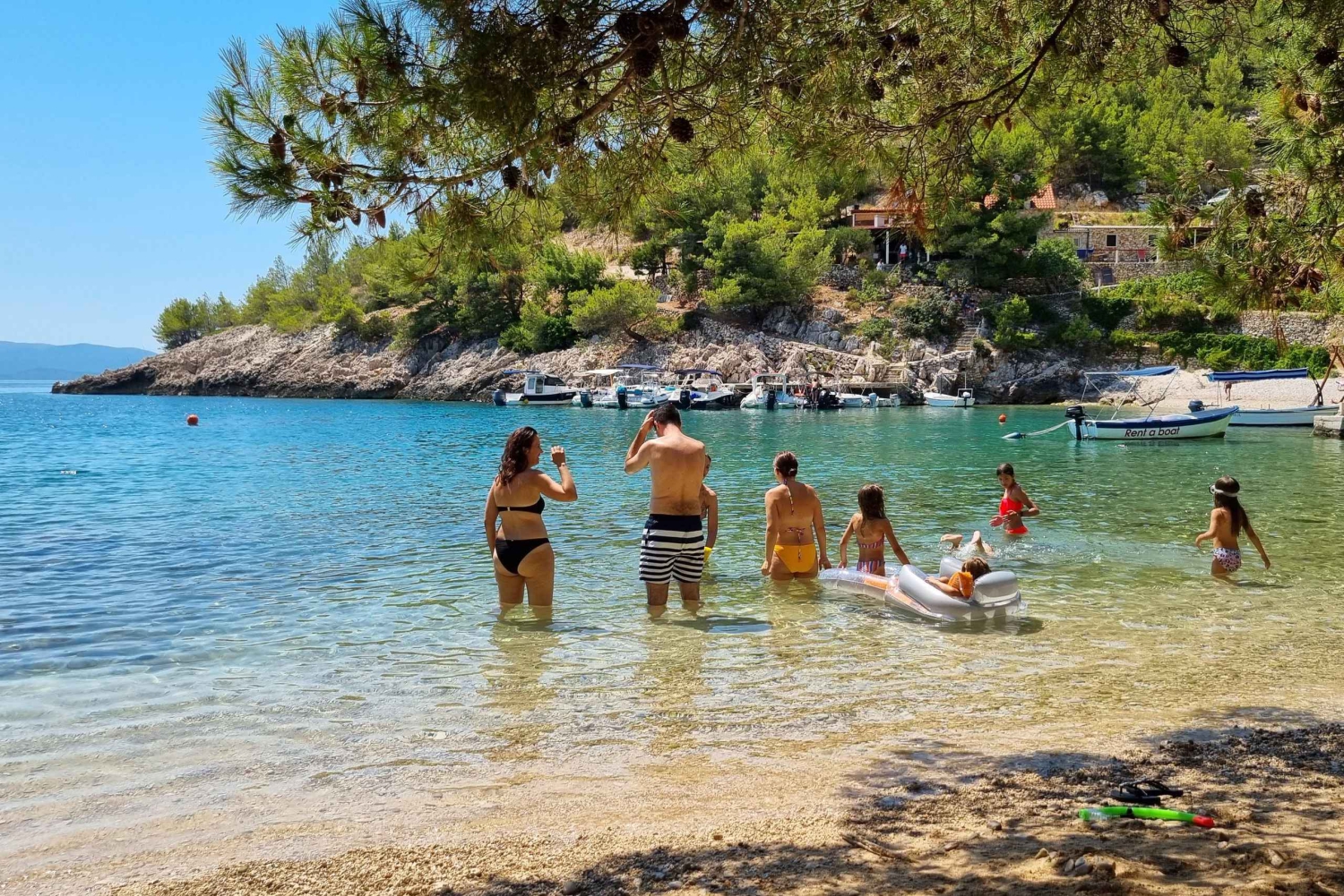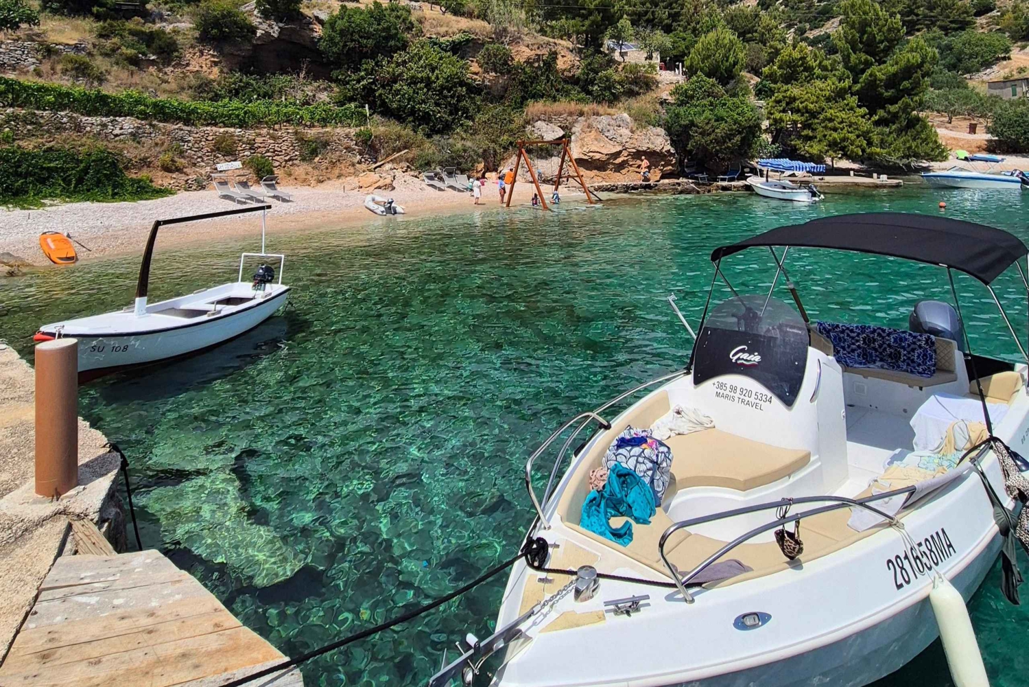 2 Reviews高速ボートによるフルデイツアーで、フヴァル島、ゼチェヴォ島、ブラチ島を巡ります。 水泳・シュノーケリング・島町の観光・レストラン利用が可能な6ヶ所を訪問。 ボトル入り飲料水が含まれます。