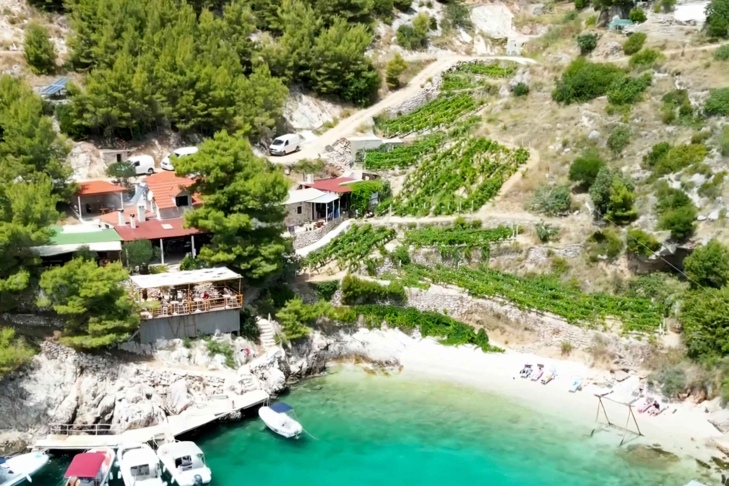 ツアーは9時開始、直接フヴァル島へ向かい洞窟ダイビングをお楽しみいただきます。その後、静かなマラ・スティニヴァ湾へ移動し、海水浴、シュノーケリング、崖飛び込みをお楽しみください。泳ぎの後はジェルサの町へ観光へ。アイスクリーム、ワインテイスティング、チョコレートショップなどをお楽しみいただけます。次にカクテルバーのあるゼチェヴォ島へ寄港し、泳ぎやシュノーケリングをお楽しみください。フヴァル島を後にして、ズラトニ・ラットビーチへ移動します。お客様は上陸するか、船上から眺めるかお選びいただけます。その後、ブランコとレストランのあるヴァラ・フルヴァスカ湾へ進みます。静かな島の湾の美しい環境で、天然薪火で調理された料理を、伝統的なレストランにて(別途購入)お楽しみいただけます。その後、イルカを探しながら航行し、18:00頃にマカルスカに到着いたします。 出発時間は10:00からのオプションも可能です。 航路は、海況やランチ予約先の状況により、逆順となる場合がございます。Includes