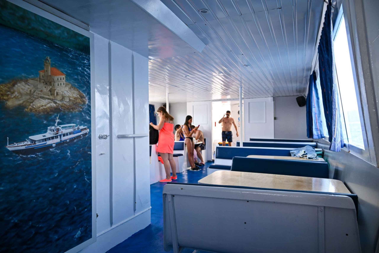 アイランドホッピングツアーにご参加ください。 ショルタ島のネチュヤム湾にある難破船コンテッサ号を探検しましょう。 3つの小さな島の間にあるブルーラグーンの透き通った海で泳ぎましょう。 集合場所から12:30に出発します。 45分先の最初の目的地に向かって航海している間、乗組員が船上で作りたてのランチを提供します。魚(フルッティ・ディ・マーレ・リゾット)、肉(ボロネーゼ)、野菜(トマトソースパスタ)からお選びいただけます。 ランチは13:00頃です。終日、水、ワイン、アイスティーなどのドリンクが含まれています。 最初の停泊地はブルーラグーンです。ここで1時間半停泊して、水泳、シュノーケリング、日光浴を楽しみます。船内では、安全預かりでシュノーケリングマスクと浮き輪をご利用いただけます。 ブルーラグーンから約1時間半出発します。 15:30頃、次の目的地である難破船コンテッサへ向かいます。コンテッサはショルタ島の小さなネチュヤム湾にあります。その間、乗組員がクロアチアの自家製リコリスの試飲をご案内します。 できるだけ近くに船を停泊させます。コンテッサ難破船の周りで泳いだりシュノーケリングをしたりできる自由時間は約70分です。 ショルタ島からの出発は17:00で、スプリットとスラティネに向かいます。 その間、新鮮なスイカをお召し上がりいただけます。 次の目的地は2時間で選べます。 ユネスコ世界遺産の都市スプリット、または小さな漁村スラティネ。 スプリットの停泊地は観光や古代都市の探索に最適ですが、透き通った海で泳ぎ続け、地元のレストランで夕食をとりたい場合は、スラティネがおすすめです。 トロギルへの帰着は21:00の予定です。 ルートや旅程は、気象条件や海上の安全上の危険により変更される場合があります。Includes