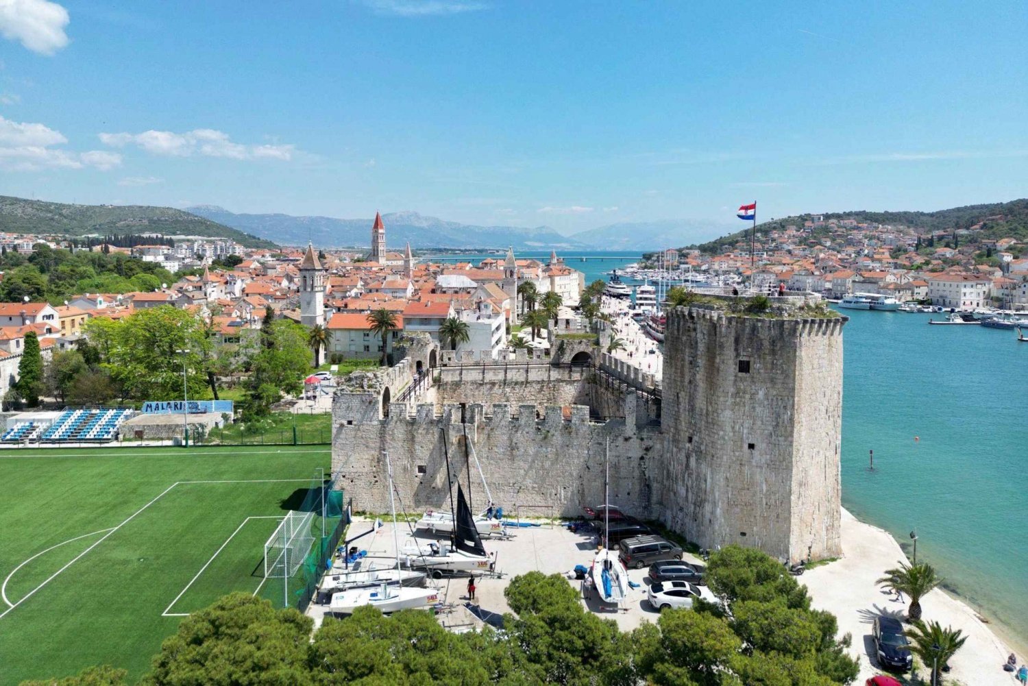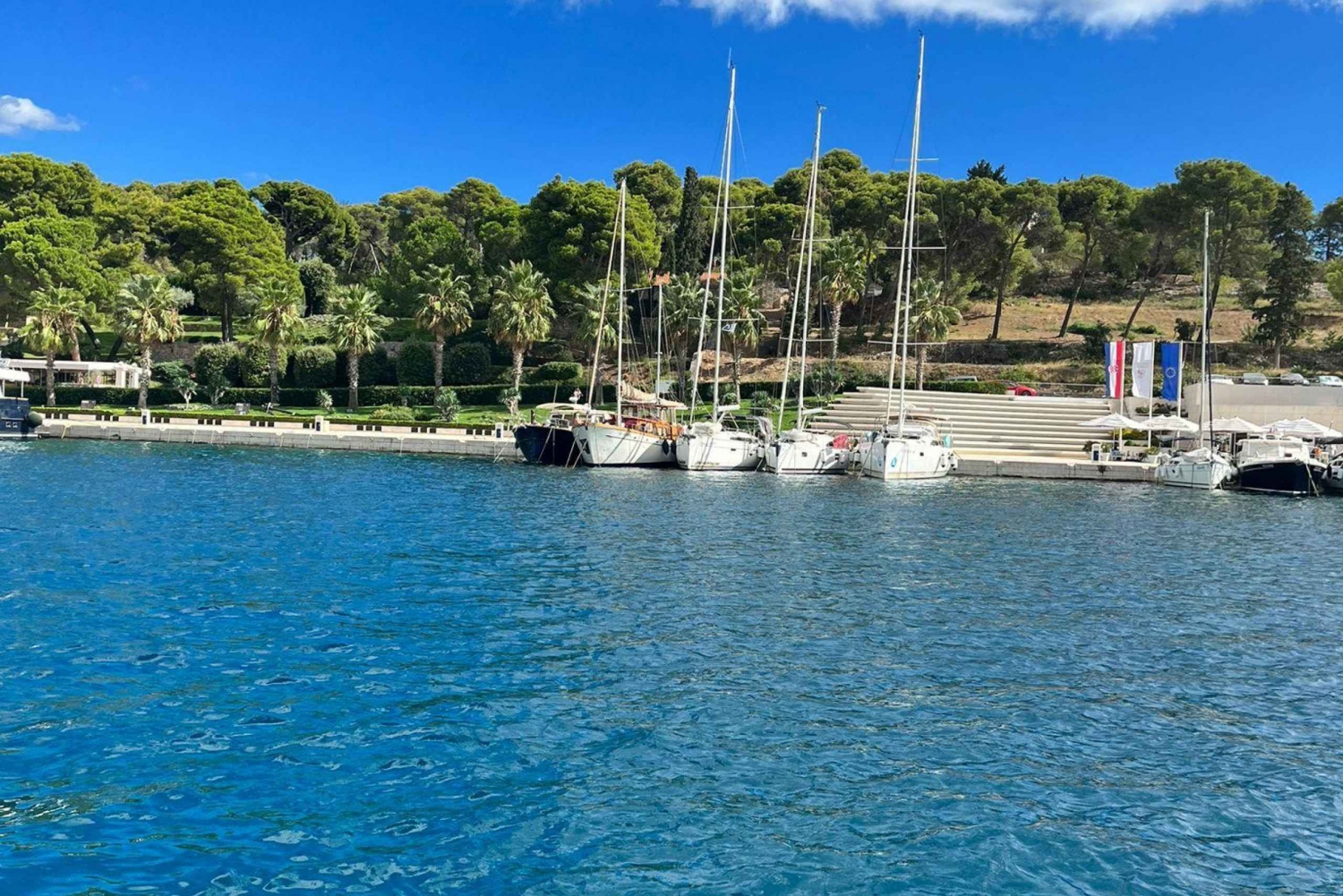 We gaan samen met onze boot naar de mooiste lagune in de Adriatische Zee, Blue Lagoon We vertrekken vanuit Split richting Trogir en bezoeken het prachtige Trogir, een klein Venetië... een stad onder bescherming van UNESCO erfgoed. In Trogir heb je een uur om de stad te bezichtigen en te genieten van de mooie wijken, stop bij Tunaholic Fish Bar voor een moderne kijk op klassieke visgerechten, waarna we op onze boot stappen en in ongeveer twintig minuten bij de Blue Lagoon aankomen. Aards paradijs, betoverend landschap, heldere zee bezaaid met smaragdgroene kleuren. Daar kun je zwemmen, duiken, iets drinken in goed gezelschap of gewoon genieten van de omgeving van de boot, de rust en de zomerzon. Laten we verder gaan, want het avontuur is nog niet voorbij, we gaan richting Čiovo en Labadusa beach, een prachtig klein strand vol inhoud, gevolgd door nog een snelle duik, misschien lunch. Op onze boottochten is ontspanning het belangrijkste, genieten van de natuurlijke schoonheid en gelukkig en tevreden terugkeren. Waarschuwing; Vanwege de soms onvoorspelbare aard van reizen over zee, kunnen we niet altijd garanderen dat de route precies hetzelfde zal zijn. We zullen er alles aan doen om je tevreden te stellenIncludes