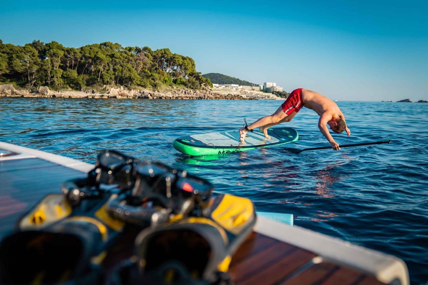 Je luxe jachtbeleving begint om 18.15 uur in de belangrijkste haven van Dubrovnik, Gruž. Van daaruit vaar je naar de prachtige Blauwe en Groene Grotten op het eiland Koločep. Bij aankomst word je overweldigd door het stralende blauwe licht dat de Blauwe Grot vult – een werkelijk surrealistische plek om te zwemmen in het heldere, koele water. Geniet 's avonds van de rust van de Adriatische Zee met volop mogelijkheden om te zwemmen, snorkelen of gewoon te relaxen op het dek. Je kapitein loodst je langs de route en vertelt interessante verhalen en weetjes over de geschiedenis en cultuur van de omgeving, waardoor de reis zowel leerzaam als ontspannend is. Als klap op de vuurpijl vaart u net op tijd voor zonsondergang terug naar Dubrovnik, waar u de lucht boven de historische skyline van de stad ziet oplichten. Het is een perfecte mix van avontuur, rust en luxe – en een onvergetelijke herinnering aan de Adriatische Zee.Includes