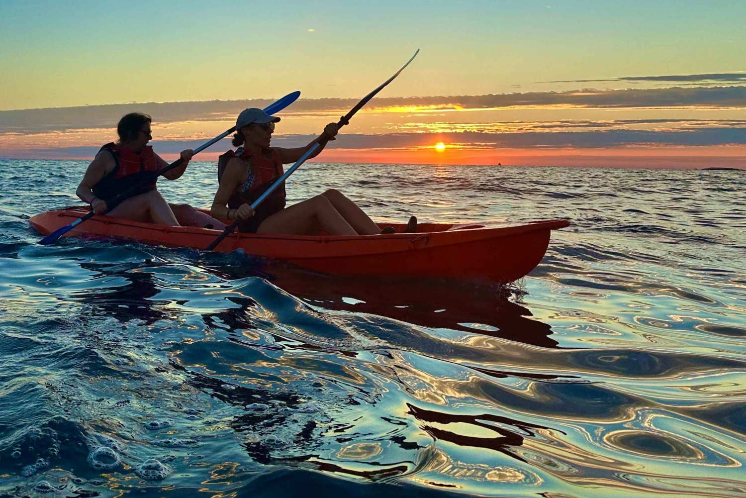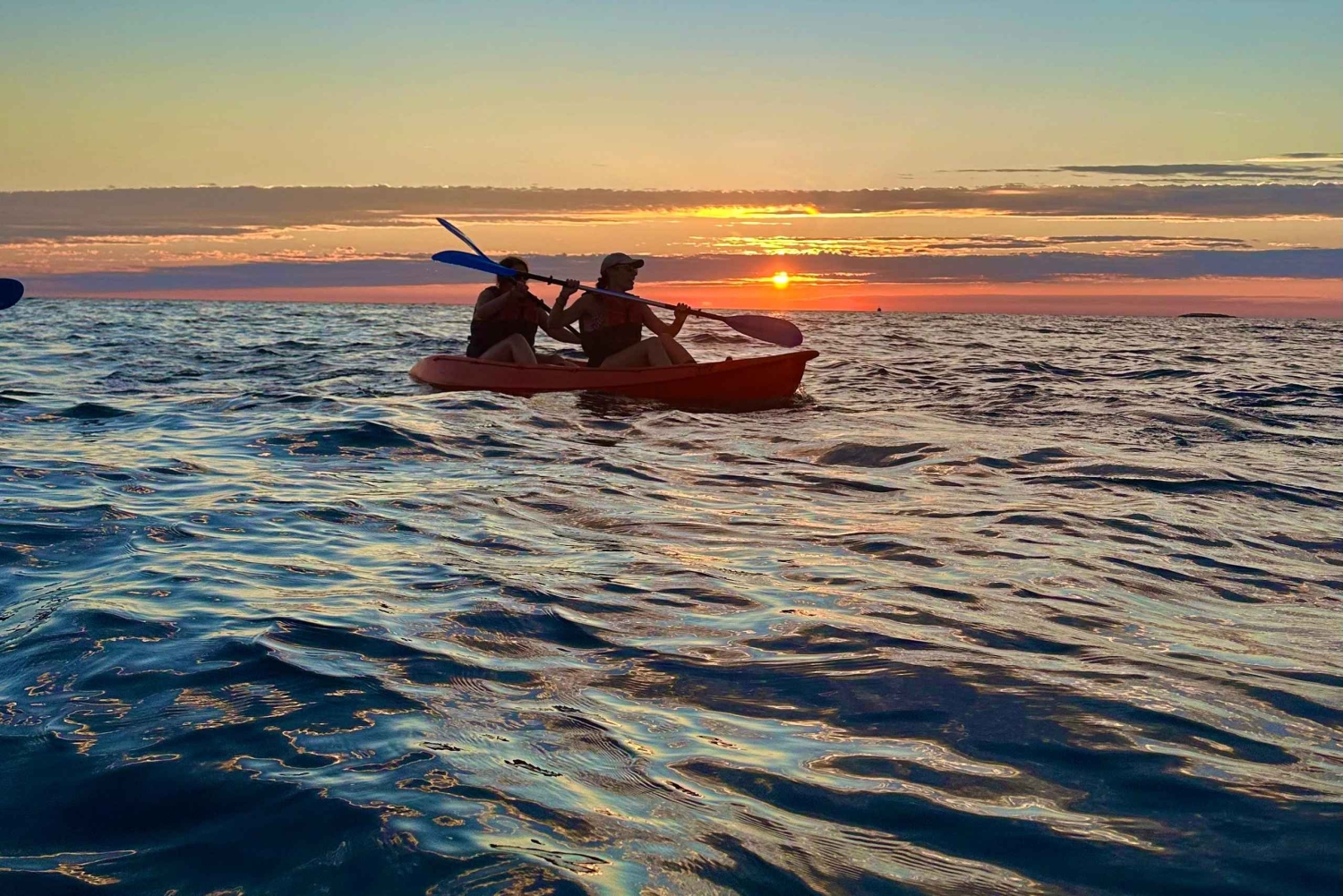 Ontdek Rovinj vanaf de zee en daarbuiten – een unieke combinatie van kajakken, geschiedenis, snorkelen en een vleugje adrenaline! De tour is voor iedereen, of je nu een beginner bent of een ervaren kajakker. We beginnen de tour met een veiligheidsbriefing om ervoor te zorgen dat iedereen zich zelfverzekerd voelt, of je nu voor het eerst peddelt of meer ervaring hebt. Van daaruit kajakken we naar de prachtige oude binnenstad van Rovinj, langs kleurrijke gebouwen aan het water en de iconische kerk van St. Euphemia. Onderweg stoppen we even om wat historische weetjes over de oude stad te delen, zodat je een kijkje kunt nemen in het rijke verleden van Rovinj – en dat allemaal terwijl je op open zee dobbert. Onze belangrijkste stop is het prachtige eilandje St. Catherine, waar we aan land gaan op een rustig strand omringd door kristalhelder water en een ansichtkaartwaardig uitzicht op Rovinj. Hier heb je tijd om te zwemmen, te relaxen en te snorkelen met de meegeleverde uitrusting. Na de strandpauze maken we een korte wandeling naar de nabijgelegen kliffen, een verborgen parel van het eiland. Wie op zoek is naar een beetje spanning, kan klifduiken – met hoogtes variërend van 1 tot 10 meter is dit geschikt voor zowel beginners als sensatiezoekers. Of je nu springt of alleen kijkt, het is een hoogtepunt van de tour. We sluiten de ervaring af met een ontspannen wandeling over het eiland, waarbij we genieten van de prachtige natuur en het uitzicht op zee, voordat we terug peddelen naar het startpunt. Tijdens de tour maken onze gidsen foto's van je, zodat je een herinnering hebt aan deze onvergetelijke ervaring. SUNSET TOUR (18:00 uur): Voor wie even aan de hitte van de dag wil ontsnappen, is de sunset tour perfect! Geniet van een adembenemend uitzicht op de zon die in de zee zakt, terwijl je onderweg misschien dolfijnen ziet. Het is een magische ervaring die de schoonheid van de natuur combineert met het plezier van het zien van deze geweldige dieren. Het wordt zeker een onvergetelijke ervaring die je nog lang zult koesteren! Geniet van elk moment van dit ongelooflijke avontuur! Totale duur: ongeveer 3 uur, zodat je genoeg tijd hebt om te ontdekken, te relaxen en plezier te hebben. Boek nu en bekijk Rovinj vanuit een heel nieuw perspectief!Includes
