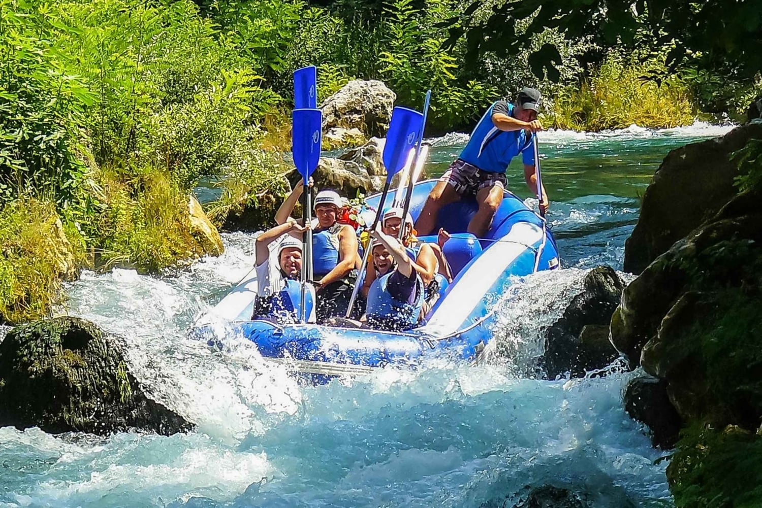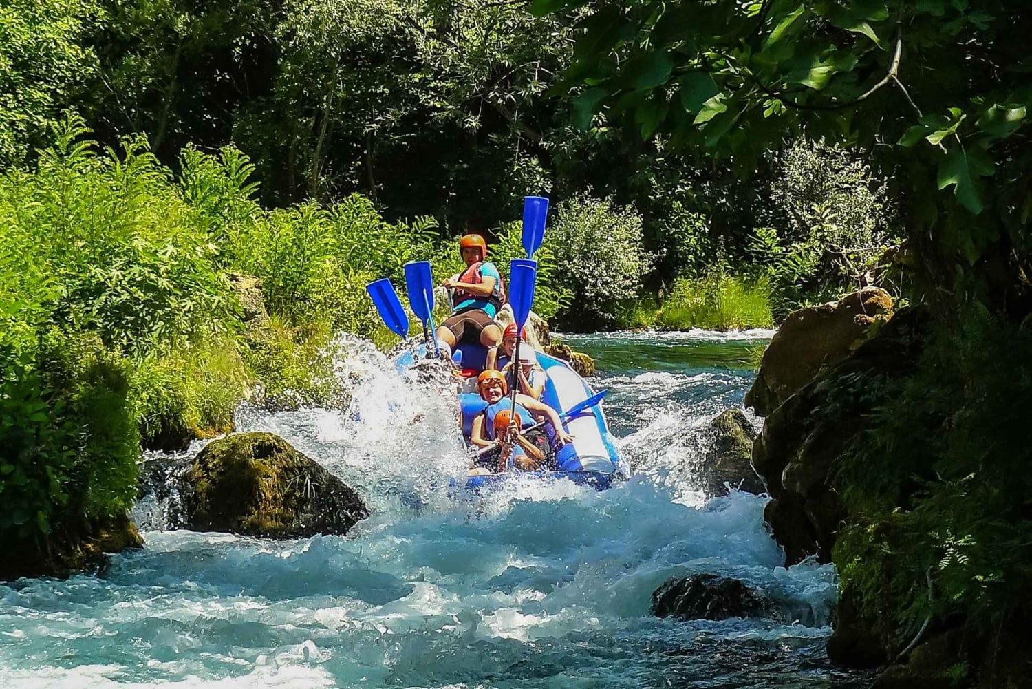 Breng wat tijd door op de Cetina rivier in het zuiden van Kroatië met een raftingavontuur. Leg een lengte van 12 kilometer af met een afdaling van 47 meter en geniet van de omgeving van de meest waterrijke rivier in Dalmatië. Begin het avontuur met een handige ophaalservice vanaf Omiš en laat je naar de rivier rijden, of kom naar onze gratis parkeerplaats bij het eindpunt van het raften. Na een veiligheidsbriefing kleed je je aan met de benodigde uitrusting, waaronder zwemvesten, helmen, peddels en neopreenpakken. Ga dan het water op. Op het eerste deel van je tocht leg je een afstand van 5 kilometer af in stroomversnellingen van niveau 2. De rest van de tocht vaar je door stroomversnellingen van niveau 3. Deze overgang maakt de tocht veilig voor iedereen van 5 jaar en ouder, zolang minderjarigen worden begeleid door hun ouders of voogden. Spring van een 3 of 6 meter hoge klif, zwem in kristalhelder water en geniet van het uitzicht op de waterval. Aan het eind van de tocht word je teruggebracht naar het ophaalpunt in Omiš.Includes
