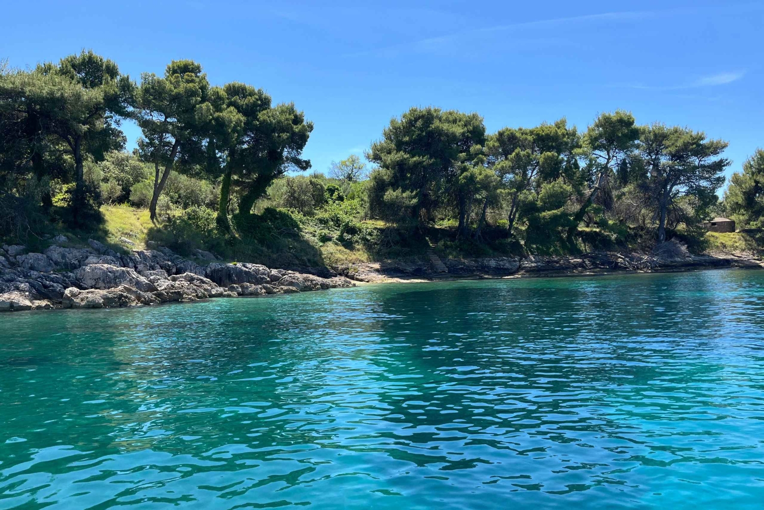 Vaar met ons mee en ontsnap aan de drukte van de stad. We garanderen je een onvergetelijke ervaring waarin je kunt genieten en ontspannen. Met onze open speedboot en ervaren lokale schipper nemen we je mee naar het paradijs. • We zijn gevestigd aan de Obala kneza Branimir, bij een klein tankstation, en daarna is het aan jou om van de rest van de reis te genieten. • Als we naar de eilanden vertrekken, is onze eerste stop de blauwe lagune, waar je kunt zwemmen vanaf de boot, snorkelen en genieten van een koud drankje aan boord, dat bij de prijs is inbegrepen. • Na het zwemmen nemen we je mee naar het eiland Ugljan, het vissersdorpje Kali, waar je kunt wandelen en de schoonheid van het eiland kunt bewonderen. We raden ook een bezoek aan het lokale restaurant Srdela Snack aan, waar je de beste culinaire lekkernijen kunt proeven. Ze bieden een vismenu met traditionele zeevruchten tegen een betaalbare prijs. • Na het sightseeing en het lekkere eten gaan we naar de laatste stop. Om de kristalheldere kleur van de zee in je geheugen te houden, nemen we je mee voor nog een duik. We gaan voor anker bij het kleine eilandje Galevac, waar je naartoe kunt zwemmen en het hele eiland kunt zien. Door zijn kleine omvang duurt het letterlijk 15-20 minuten om het eiland te bekijken. Zoek een perfect plekje om uit te rusten onder de pijnbomen en luister naar het gezang van de vogels of bezoek het klooster dat daar staat. • Op het afgesproken tijdstip ontmoeten we elkaar op de boot, waar je iets te drinken krijgt aangeboden, en vervolgens gaan we richting Zadar.Includes