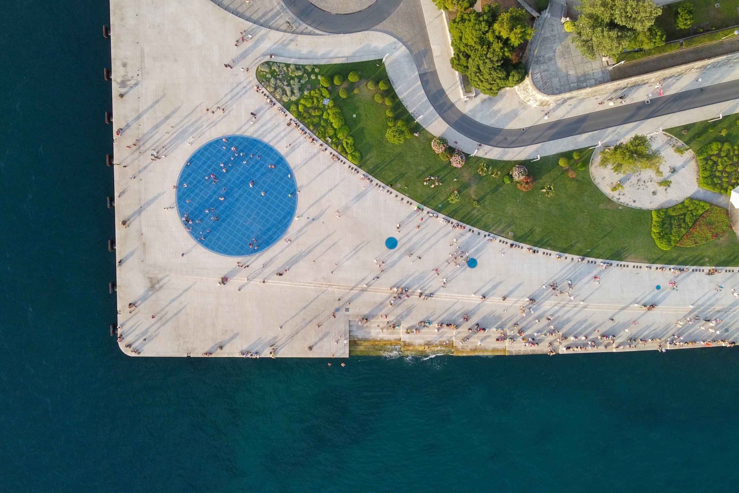 Na de pick-up begint je tour bij de Landpoort van Zadar, een majestueus meesterwerk uit de Renaissance, gebouwd in 1543. Deze indrukwekkende poort, versierd met ingewikkeld steenhouwwerk en een prachtig gebeeldhouwde gevleugelde leeuw, diende als hoofdingang tot de versterkte Oude Stad. De Landpoort is niet alleen een bewijs van de rijke geschiedenis van Zadar, maar ook een schilderachtige achtergrond voor foto's. Vervolgens bezoek je de Sfinx van Zadar, een uniek beeldhouwwerk. Deze imposante figuur, met een menselijk hoofd en een leeuwenlichaam, valt op door zijn menselijke handen in plaats van voorpoten, wat een intrigerende draai geeft aan het traditionele sfinxontwerp. De tour gaat verder bij het zeeorgel. Deze innovatieve installatie verandert de boulevard in een muziekinstrument en gebruikt de beweging van golven en wind om betoverende melodieën te creëren. Het produceert een breed scala aan muzikale tonen, variërend met de kracht van de golven. Als de zon begint onder te gaan, kom je aan bij de Begroeting aan de Zon, een verbluffende lichtinstallatie op zonne-energie die tot leven komt in de schemering. Deze betoverende weergave van kleuren en patronen verandert de waterkant in een levendig spektakel. Je reis eindigt bij het Forum Romanum, het oude hart van Zadar, gebouwd tussen de 1e eeuw voor Christus en de 3e eeuw na Christus. Het was ooit het centrum van het openbare leven in het Romeinse Zadar en heeft overblijfselen van een tempel, waaronder originele bestrating en trappen, evenals twee monumentale zuilen. De tour eindigt met een handige drop-off op de door jou aangegeven locatie.Includes