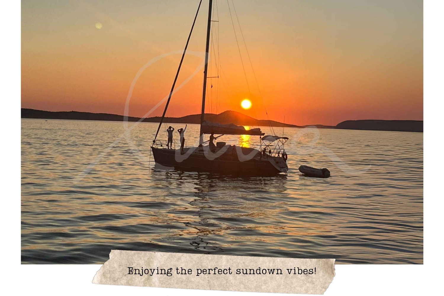 Sett seil på et privat heldags eventyr langs Kroatias fantastiske kystlinje. Avreise fra Šibenik og cruise gjennom den naturskjønne St. Anthony-kanalen med panoramautsikt over historiske festninger. Dra ut på åpent hav for å utforske nærliggende øyer og skjulte bukter. Svøm i krystallklart vann, snorkle i fredelige viker, paddleboard eller bare slapp av i en hengekøye under solen. Østerssmaking og stopp på øyer kan ordnes på forespørsel. Nyt en tradisjonell dalmatisk lunsj tilberedt om bord av skipperen, eller besøk en lokal øyrestaurant (Octopus Peka anbefales). Dagen avsluttes med en avslappende seiltur tilbake mot Šibenik i solnedgangen. Ledet av Matea – en sertifisert skipper, arkitekt og lokal guide – kombinerer denne turen for små grupper komfort, kultur og eventyr i en virkelig personlig opplevelse.Includes