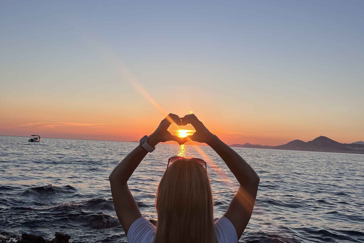 Wyrusz na 1-godzinny rejs o zachodzie słońca z Cavtatu i płyń wzdłuż malowniczego wybrzeża Župy i pobliskich wysp, gdy słońce zachodzi nad Adriatykiem. Podziwiaj zapierające dech w piersiach widoki na historyczne miasta, malownicze nabrzeża i bujne śródziemnomorskie krajobrazy skąpane w ciepłym blasku złotej godziny. Ten kameralny rejs jest przeznaczony dla małych grup, zapewniając relaksujące, spersonalizowane wrażenia. Nasza przyjazna załoga zajmie się każdym gościem, dzieląc się lokalnymi spostrzeżeniami i pomagając robić piękne zdjęcia, abyś mógł zabrać do domu niezapomniane wspomnienia. Wypij kieliszek dobrego lokalnego wina lub innego ulubionego drinka, delektując się pyszną zimną tacą z lokalnymi serami, dalmatyńskim prosciutto i marynowanymi warzywami. Płynąc obok spokojnych wysp Supetar, Mrkan i Bobara, pozwól, aby morska bryza i delikatny szum fal Cię zrelaksowały. Wznieś toast za kolejny idealny dzień nad Adriatykiem, otoczony wspaniałymi widokami i niezapomnianą atmosferą zachodzącego słońca. Nasza przyjazna załoga z radością pomoże Ci uwiecznić wyjątkowe chwile na pięknych zdjęciach, dzięki czemu zabierzesz do domu niezapomniane wspomnienia z tego magicznego wieczoru. Ten rejs to idealne połączenie zapierających dech w piersiach widoków, ciepłej lokalnej gościnności i prawdziwego chorwackiego uroku – przeżycie o zachodzie słońca, które zapamiętasz na zawsze.Includes