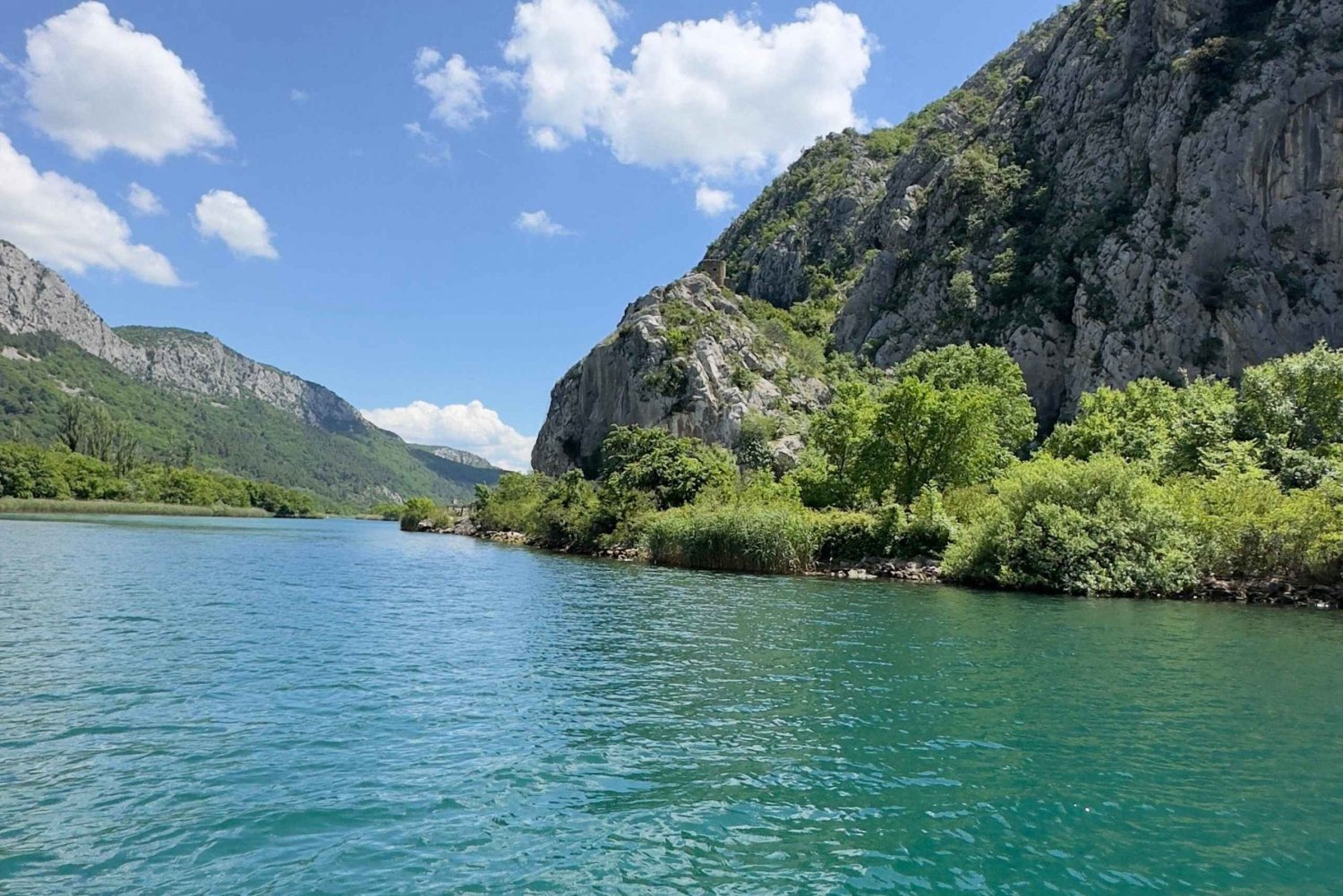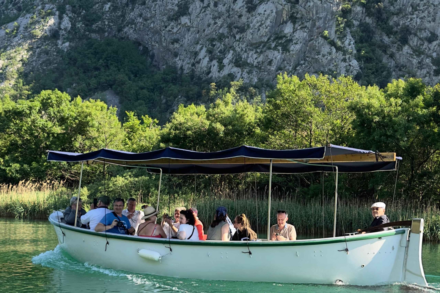 Descobre a beleza intocada do desfiladeiro do rio Cetina num tranquilo passeio de barco de 2 horas a partir de Omiš. Navega por um dos desfiladeiros mais deslumbrantes da Dalmácia – uma área natural protegida desde 1963 – com falésias dramáticas, águas esmeralda e um rico património local ao longo do caminho. Embarca no barco a poucos passos da nossa agência Dalmatia Travel em Omiš, depois de uma receção calorosa e um breve briefing. À medida que avançamos para o interior, vais desfrutar de vistas deslumbrantes sobre as montanhas Omiška Dinara, a Fortaleza de Fortica, os bunkers da Segunda Guerra Mundial, a Central Hidroelétrica de Zakučac e Kaštil Slanica – uma torre de vigia otomana do século XVI. Com um pouco de sorte, podes avistar aves, peixes ou patos selvagens no seu habitat natural. O passeio inclui uma pausa de 40 minutos em Radmanove Mlinice, um retiro cénico à beira-rio, aninhado na natureza. Aqui, podes explorar moinhos históricos, desfrutar da sombra de árvores centenárias, tirar fotos bonitas ou simplesmente relaxar junto ao rio. Depois da pausa, voltamos pelo mesmo caminho – mas com novas perspetivas e memórias. O passeio é seguro, calmo e não exige esforço físico. Perfeito para famílias, casais, seniores e amantes da natureza de todas as idades. O que está incluído • Passeio de barco de ida e volta de 2 horas pelo desfiladeiro de Cetina (7 km em cada sentido) • Paragem de 40 minutos no parque natural Radmanove Mlinice • Grupo pequeno para uma experiência descontraída • Capitão experiente e licenciado, focado na tua segurança • Utilização gratuita do lounge turístico da Dalmatia Travel antes e depois do passeio: ✓ café e água potável grátis ✓ Acesso à casa de banho • Programa do passeio impresso • 15% de desconto na tua próxima viagem com a Dalmatia Travel • Equipa simpática sempre disponível para dicas e assistência locais ⸻ !!! Atenção !!! O restaurante Radmanove Mlinice está fechado de 20/10 a 20/04. Os nossos capitães não são guias turísticos. São profissionais altamente experientes que se concentram em operar o barco com segurança e conforto. Embora tenham todo o gosto em responder às tuas perguntas, não fazem comentários guiados durante o passeio. Alguns hóspedes podem referir-se a eles como 'guias' nas avaliações – isto é um mal-entendido. Este passeio foi pensado para ser uma experiência panorâmica relaxante, permitindo-te desfrutar da paisagem tranquila como um local. ⸻ !!! Este passeio oferece um VALOR excecional, apenas 15 a 19 € por pessoa, dependendo da hora de partida. Terás uma experiência completa, confortável e bem organizada, sem igual – sem esperas ao sol, sem multidões, com atenção especial aos nossos clientes e muitos extras gratuitos. !!! ⸻ Porquê escolher-nos? • Navega por um dos mais belos desfiladeiros fluviais da Europa • Melhor custo-benefício – muito mais do que um simples passeio de barco • Lounge com sombra gratuito com café, água, Wi-Fi, WC e muito mais • Organização profissional com anos de experiência • Ótimo para todas as idades, sem esforço físico • Uma equipa local que se preocupa genuinamente com a tua experiência Reserva já e vive o rio Cetina como os locais – descontraído, autêntico e inesquecível.Includes