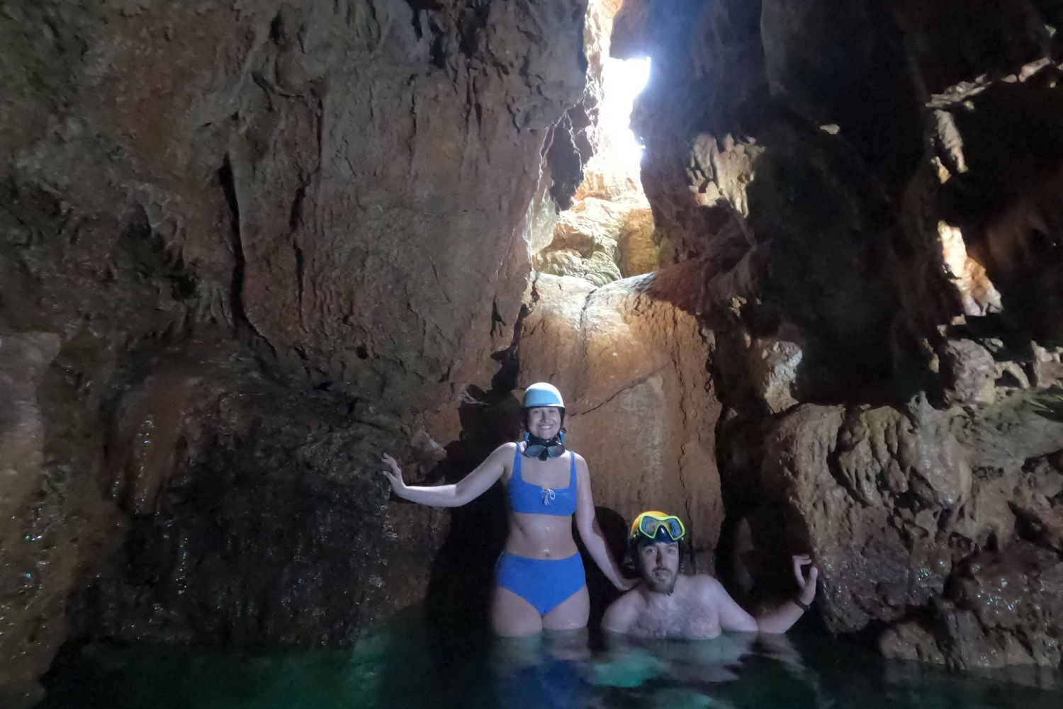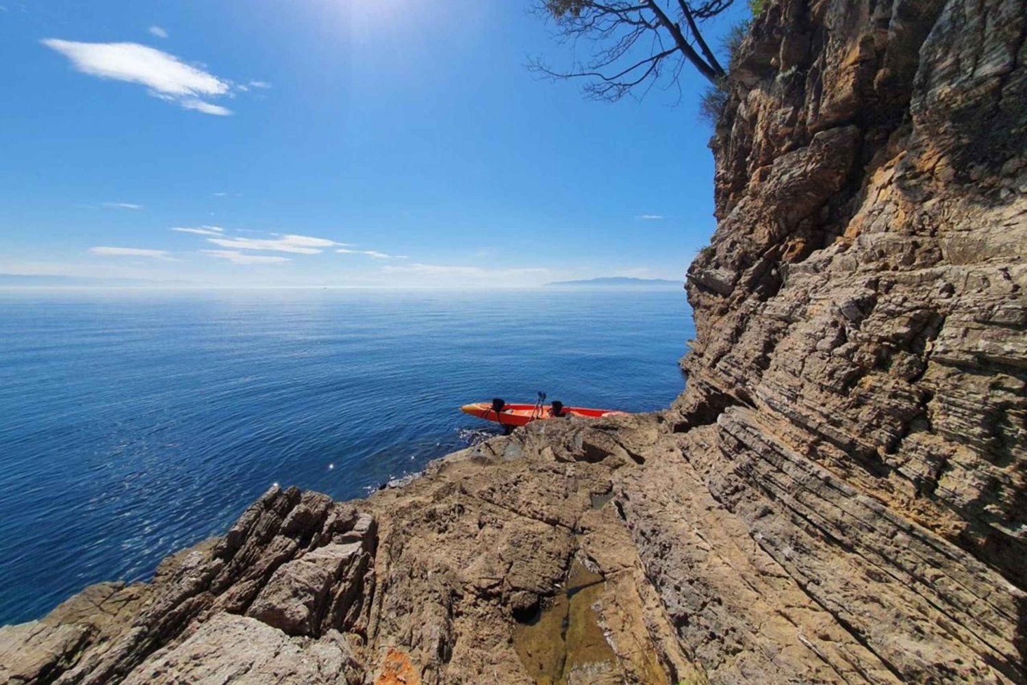 Desce a costa de Opatija de caiaque, nada em grutas submarinas e atravessa belas enseadas. Se queres saber a nossa opinião, este parece ser um dia de verão perfeito. Mas vamos começar pelo princípio. Depois de nos encontrarmos e passarmos por um breve briefing com o nosso guia na praia de Slatina, partiremos nos nossos caiaques para a 'Rocha do Diabo'. No caminho, vais ouvir histórias fascinantes sobre a história e o presente de Opatija, à medida que avançamos ao longo da costa. Quando chegares à 'Rocha do Diabo', mais conhecida como 'Grotta del Diavolo', começaremos a visita às entradas da gruta. Os mais corajosos podem tentar saltar de um penhasco, enquanto outros podem querer explorar a gruta entrando e ouvindo uma história interessante sobre os segredos que uma Villa próxima esconde. Mas vamos deixar que os nossos guias te contem o resto. A 'Grotta del Diavolo' tem uma surpresa para ti - por baixo dela, há uma pequena gruta subaquática que só pode ser alcançada mergulhando abaixo do nível do mar. Quem lá entrar vai experimentar uma sensação única de estar em contacto com o mar. Nadar na gruta não pode ser descrito por palavras; uma abertura através da qual o sol te ilumina, bem como a formação única desta gruta são apenas uma parte desta experiência incrível. Temos a certeza de que não ficarás desiludido. Os que procuram a adrenalina podem saltar de penhascos, pequenos ou grandes. Outros podem aproveitar o tempo para nadar, fazer snorkeling ou apanhar banhos de sol. No regresso a Opatija, ouvirás mais sobre a sua rica história. Esta aventura é perfeita para famílias com crianças, grupos de amigos e parceiros. Não precisas de ter qualquer experiência prévia, mas precisas de saber nadar. A viagem não é uma atividade difícil e é fácil e rapidamente dominada. Trazes o teu sorriso e a tua motivação e nós tratamos de tudo o resto.Includes