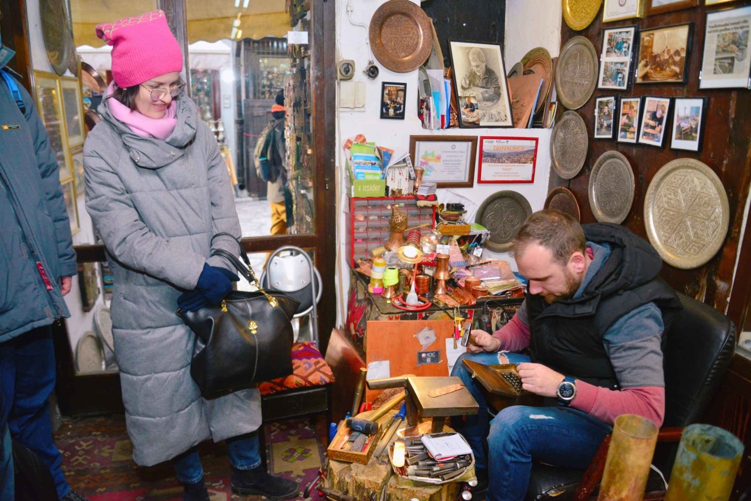 Procurando uma experiência verdadeiramente autêntica da vida local e do modo de vida em Sarajevo? Não procure mais, nós cobrimos você! Em nosso tour Food and Crafts, você terá a oportunidade de visitar algumas das ruas mais antigas da cidade de Sarajevo, com nosso guia local mostrando oficinas tradicionais e ferreiros ao longo do caminho. Ao passar pelas ruas de Sarajevo, você também terá a oportunidade de experimentar e saborear as melhores especialidades tradicionais salgadas e doces da culinária bósnia. O passeio começa em uma jóia escondida no centro histórico da cidade, onde você descobrirá os produtos de panificação mais frescos aqui. Esta padaria em particular é uma espécie de lenda local aqui, onde as pessoas estão dispostas a ficar horas na fila apenas para obter os melhores doces. É claro que vamos pular as filas. Continuando nossa jornada pelas pequenas ruas da Cidade Velha, você conhecerá nossos artesãos locais que continuam fazendo coisas artesanais, como pincéis, cafeteiras e carpinteiros. Em seguida, seguiremos pela rua mágica que teve o status de “čarsija”, significando bazar, durante o Gazi Husrev Beg em 1521, quando mais de 60 lojas foram construídas ali. Muitas dessas lojas, naquela época, mas ainda hoje, ainda vendem tapetes bósnios. Curiosidade A Bósnia e Herzegovina é um dos poucos países europeus que tem seu próprio tapete bósnio - como uma forma especial de arte aplicada, folclórica e tradicional. Seguindo os passos do antigo artesanato vamos proporcionar-lhe a experiência de visitar um café tradicional onde os moinhos de café ainda são feitos à mão. Por mais de 120 anos, uma famosa família de Sarajevo nutre esta arte artesanal e a mantém longe do esquecimento. As primeiras menções ao ofício do oleiro em Sarajevo datam de 1489, e hoje as especialidades estão no mesmo lugar que no século 16, quando foi construído, no centro os mestres deste ofício criam arte em cobre há séculos. Além do artesanato em cobre, Sarajevo é famosa pelos pincéis feitos à mão, que, segundo os artesãos de Sarajevo, podem ser usados por meio século sem perda de qualidade. Misturando um pouco de modernismo, devemos apresentá-lo a uma loja conceito moderna que mostra designs e artistas locais. Quanto à comida, não podemos deixá-lo com fome. Neste passeio, você terá a oportunidade de conhecer um dos restaurantes mais famosos da cidade. Mergulhe no mundo dos deliciosos queijos, sabores inesquecíveis de carnes curadas e fumadas e outros pratos preparados por receitas centenárias. Por último, mas não menos importante, visitaremos uma das cachimbos mais antigas de Sarajevo - experimentamos os pratos mais deliciosos dos proprietários - e o sudzukice neste restaurante local foi eleito o melhor sudzuk pelo dicionário de comida de Sarajevo no século 20. Como cereja no topo, saboreie a deliciosa baklava artesanal, servida com verdadeiro deleite - café bósnio. Nosso objetivo com este passeio é enriquecê-lo com a experiência de Sarajevo pelos olhos dos cidadãos locais.Includes