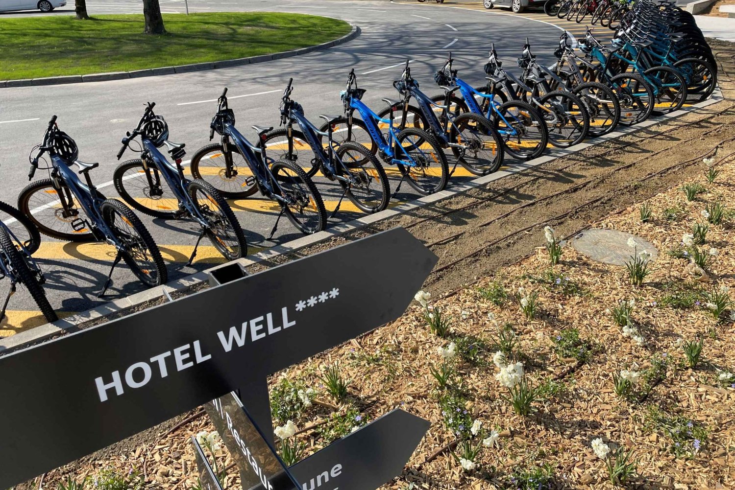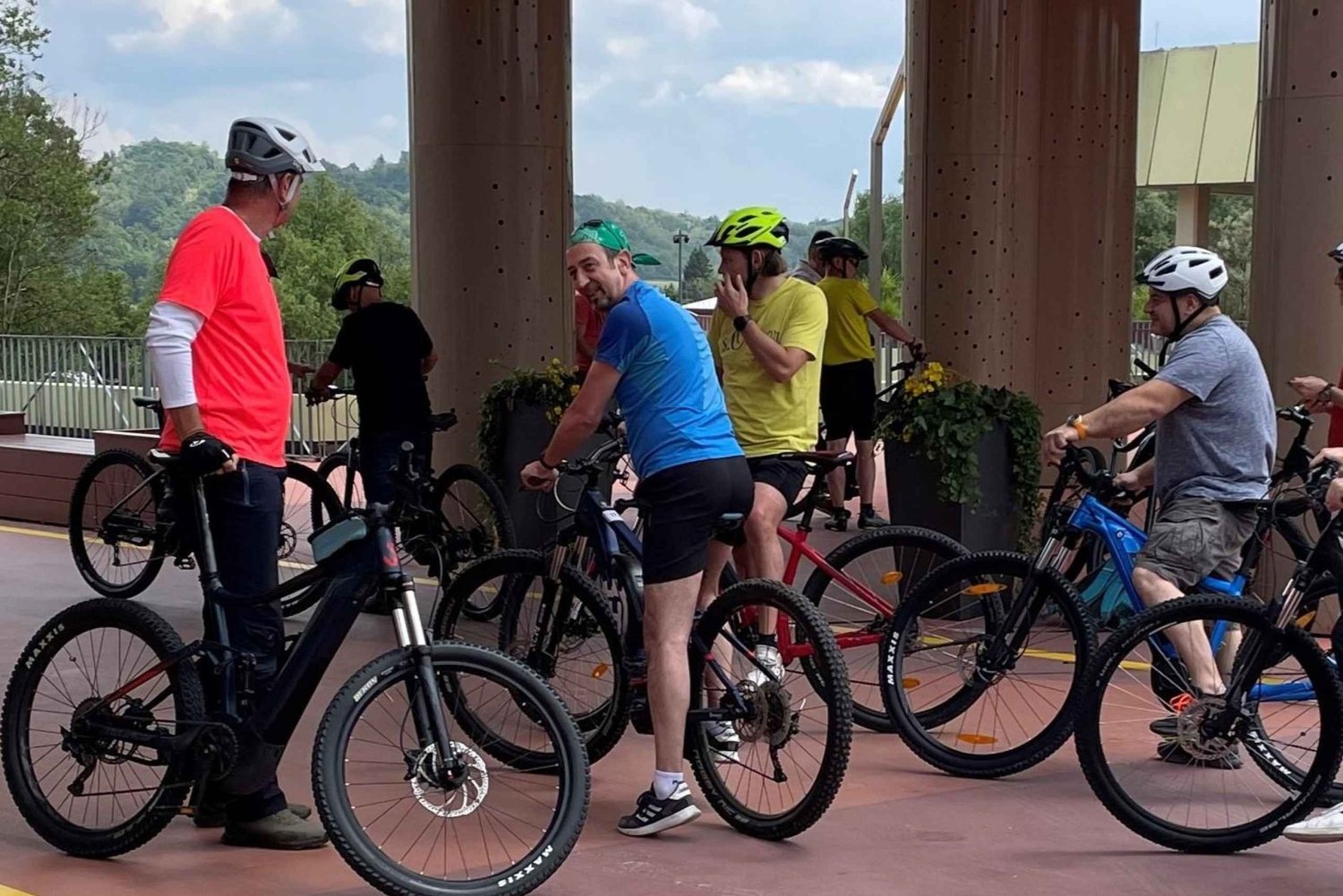 Guiado por um guia de MTB autorizado e intérprete do património cultural e histórico e com o uso de uma e-bike, um capacete de bicicleta e uma mochila com uma garrafa de água e uma barra energética.