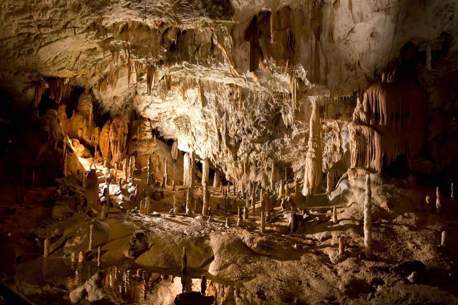 - Полюбуйтесь сталактитовыми и сталагмитовыми образованиями Постойнской пещеры