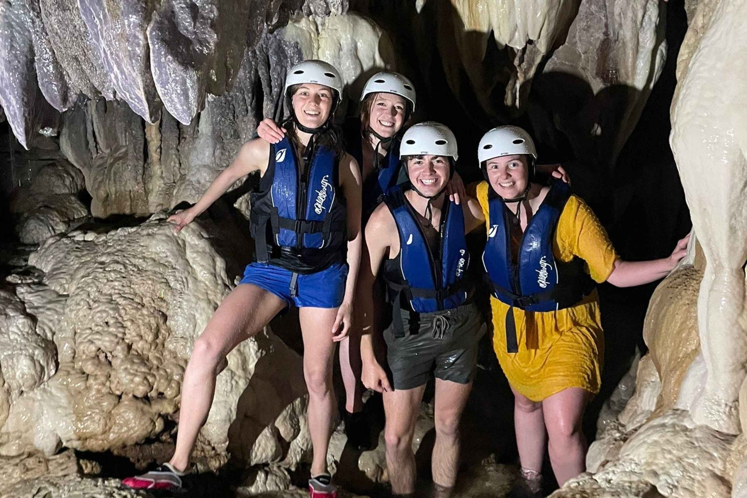 Встреча в месте сбора и доставка к месту начала рафтинга. Снаряжение для безопасности: спасательные жилеты и шлемы. Трехчасовой рафтинг-круиз. Бесплатные фото и видеоматериалы, снятые на GoPro 13. Трансфер от места окончания рафтинга обратно к месту сбора. Исследование пещер. Прыжки с утеса.Easy cancellation