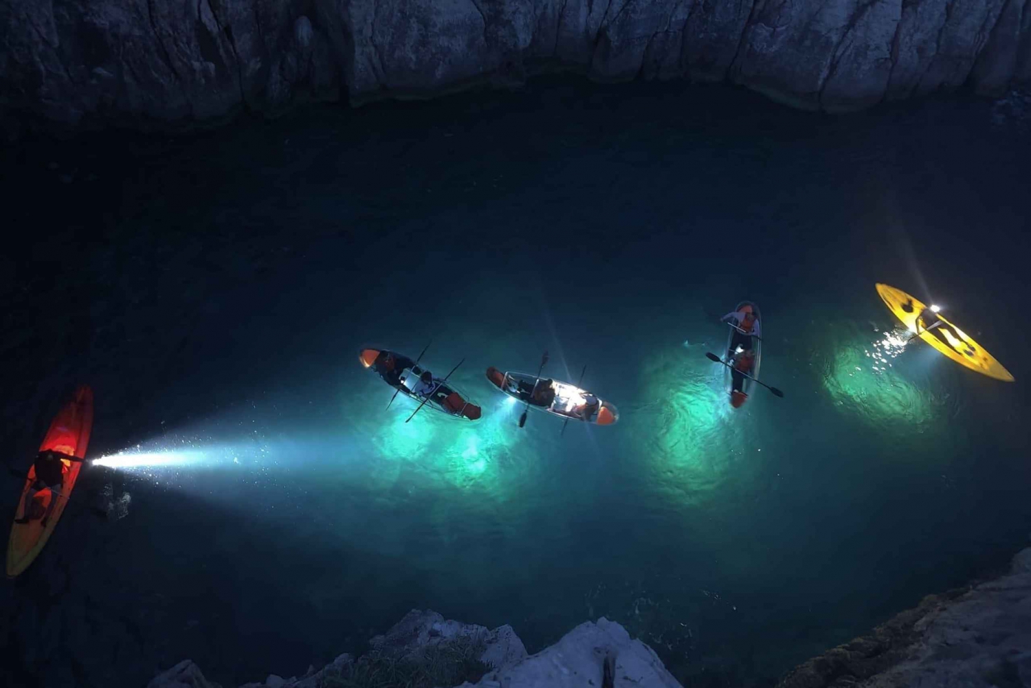 Присоединяйтесь к туру, чтобы открыть для себя совершенно новый мир и посмотреть на дно из прозрачного каяка. Вы будете просто поражены и очарованы секретами подводного мира и природной красотой побережья Адриатического моря. Встретьтесь с группой и получите вводный инструктаж по оборудованию и основным техникам каякинга. После вводного инструктажа отправляйтесь в освещенное морское приключение. Включите светодиодные фонари лодки, и перед вами откроется новый мир. Восхищайтесь видом с дна прозрачного каяка, который будет похож на вид из маски для дайвинга. Плывя на каяке вдоль побережья, вы увидите разнообразную морскую жизнь Истрии, красочную и увлекательную среду, о которой можно только мечтать. Посетите высокие скалы, окруженные звездным небом, и, возможно, вы даже встретите летучих мышей, играющих в свежем ночном бризе.Includes
